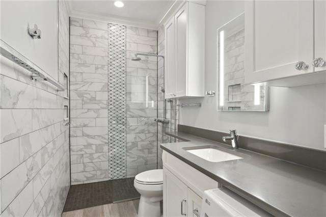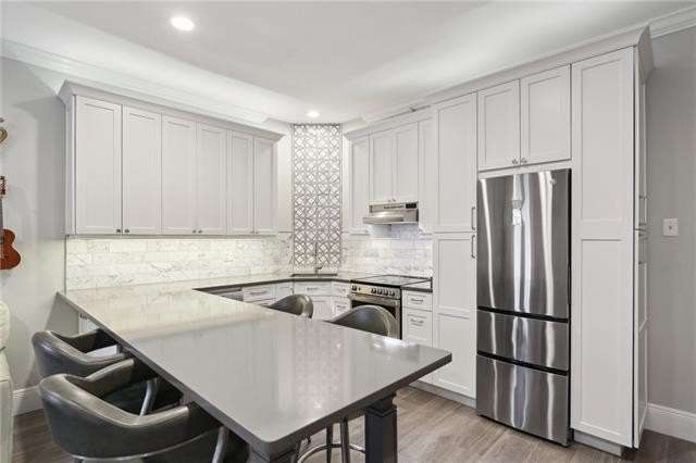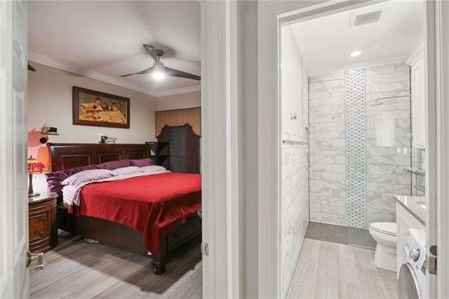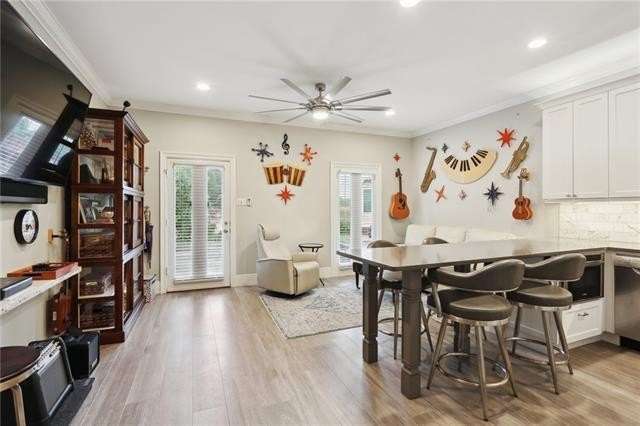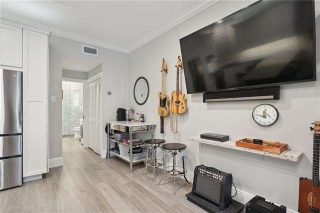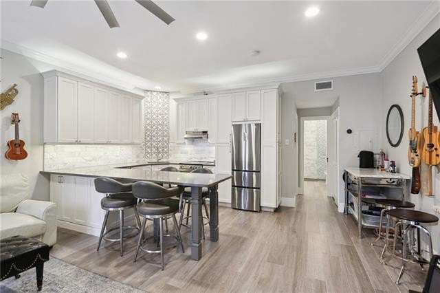Tastefully renovated, true one-bedroom condo, located in the heart of the Marigny Triangle - only minutes from the best local entertainment venues, restaurants, bakeries, and bars along historic Frenchmen Street. This sweet unit lives larger than its dimensions might suggest, featuring a bright and airy living room with street-facing windows and lots of natural light. Adjacent to the living is a sleek, custom kitchen featuring a built-in peninsula that doubles as dining space for 4+ people or extra kitchen prep space; plus an abundance of cabinet storage, under cabinet lighting, stainless appliances, and quartz counter tops. The private bedroom, located at the rear of the unit away from street noise, is perfect for sleeping in and getting away from the action, and also has a full-sized closet with rack system. The full bath is outfitted with a spacious walk-in shower, modern lighting & fixtures, great storage, and it also houses the combination washer/dryer unit; tucked perfectly into the built-in cabinetry. Wonderful association with solid finances, well maintained exteriors and grounds, including a gorgeous common courtyard shared by all owners. Truly a great spot for anyone who loves New Orleans music and culture, and who also wants something a bit more laid back. Must see to fully appreciate!