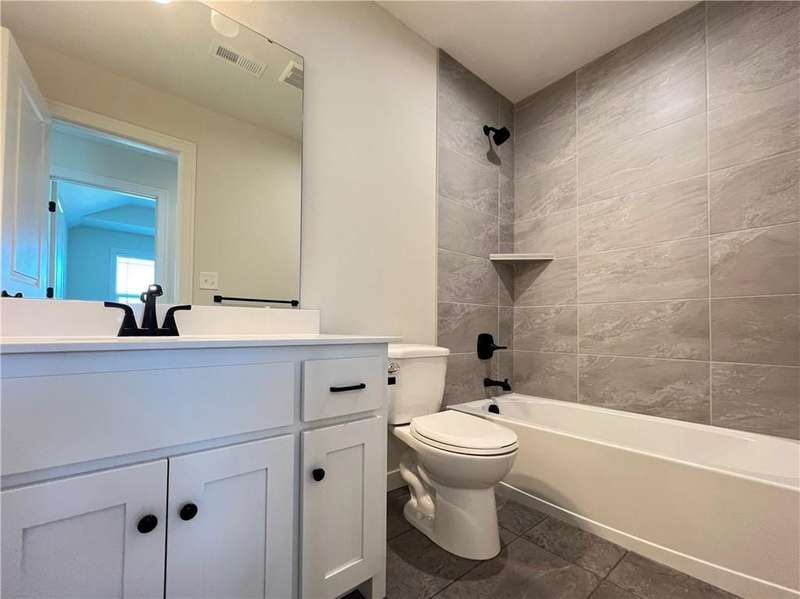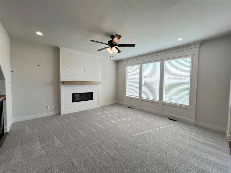 Brand new floor plan and backs to the areas stocked lake!! Spacious 3 Bed 2.5 Bath with a lake view! The dining room can be converted to a 4th bedroom. Incredible prep pantry upgrade with built-in cabinets and stained top. Featured trim wall in the hallway and master bedroom. Quartz bathroom vanity tops upgrades, matte black faucets throughout. Lighted vanity mirror at the master bath make-up table. Custom shelving in the master closet. Nearing completion! Includes garage door opener and keypad, Custom 2-inch faux wood blinds. Sprinkler System in sodded areas. Also has a green space behind the home. Taxes and sqft. are estimated.