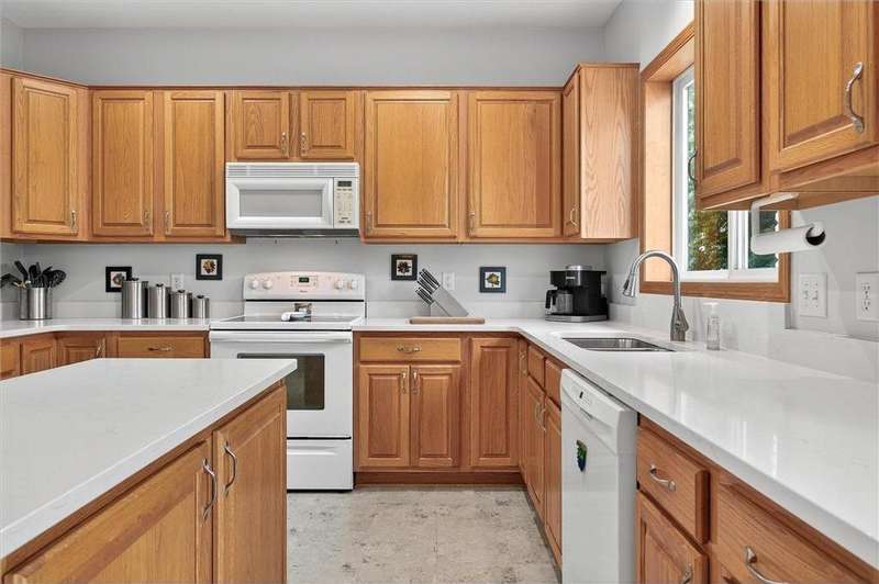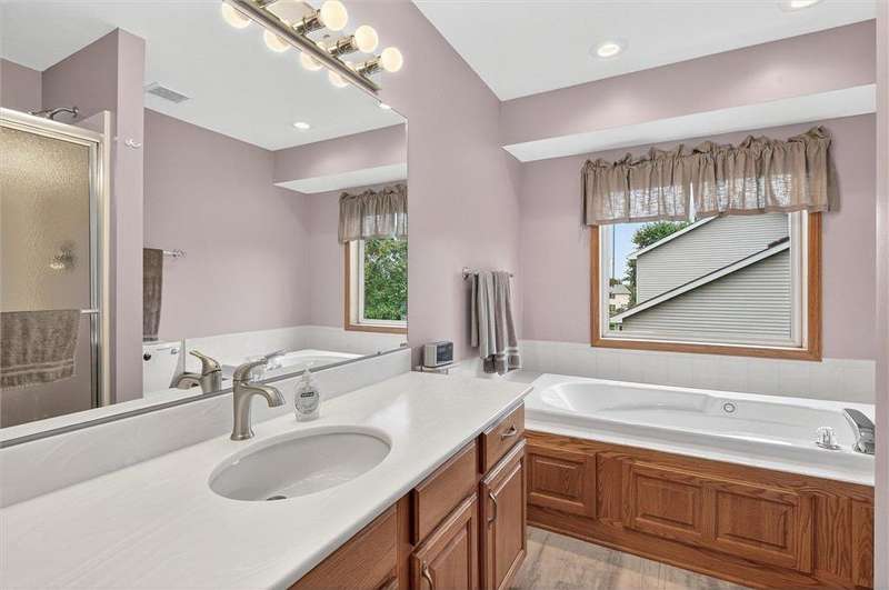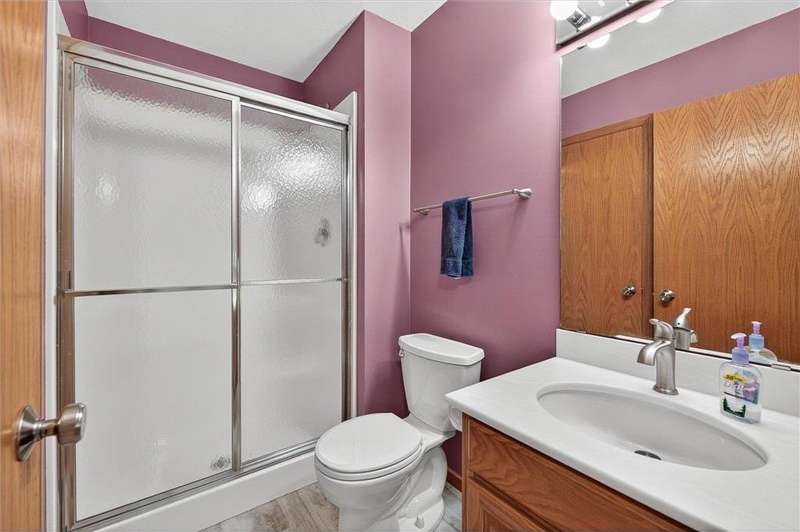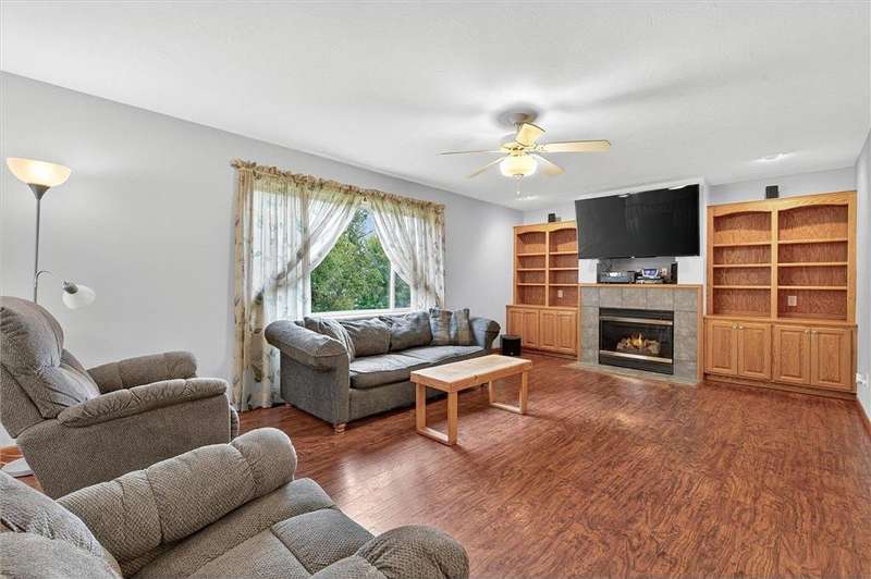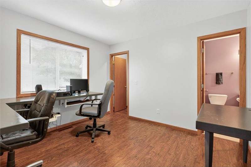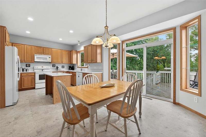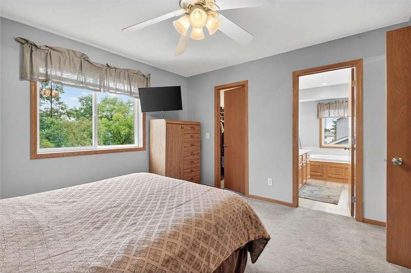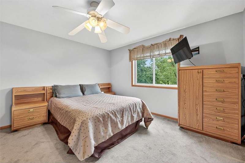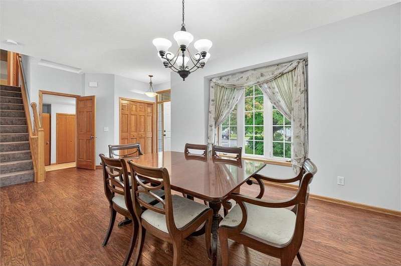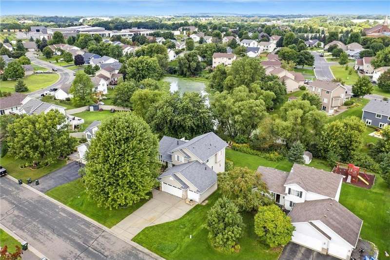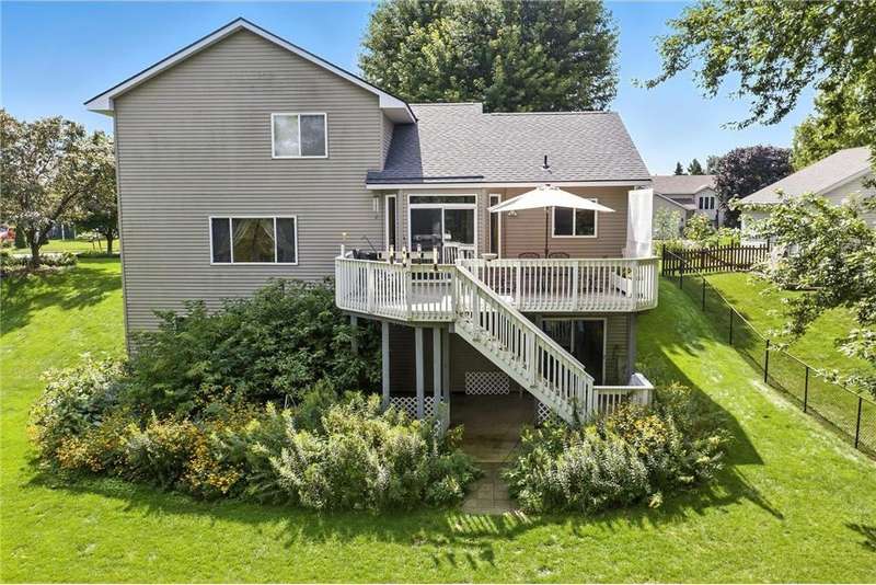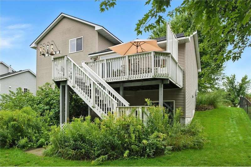 Prime Rosemount Schools. Fantastic family location. 4 bedroom, 4 bath walkout two-story home overlooking trees and pond. Close to downtown Rosemount, schools, and parks. The lower level offers a bedroom with a built-in bed and desk. Family room with new carpet, 3/4 bath, Game room with an area for a kitchenette. Storage in the workshop and utility room. Freezer and Refrigerator included. The main floor includes a family room with a fireplace and Built-in cabinets, informal dining, a Formal Dining or Living Room area, and a Laundry Room with a 3/4 bath. Upper-level Owners Suite with full bath plus two other spacious bedrooms and an upper-level full bath. Enjoy the spacious deck off informal dining. Concrete driveway and spacious three-car garage. New roof. Lower level 3/4 Bath has heated floor. Landscaping includes Pollinator plants. Garage doors are insulated Buyer HSA Home Warranty included.