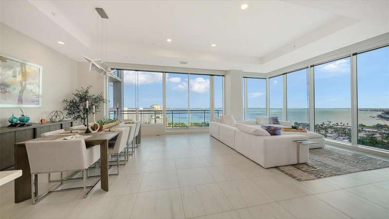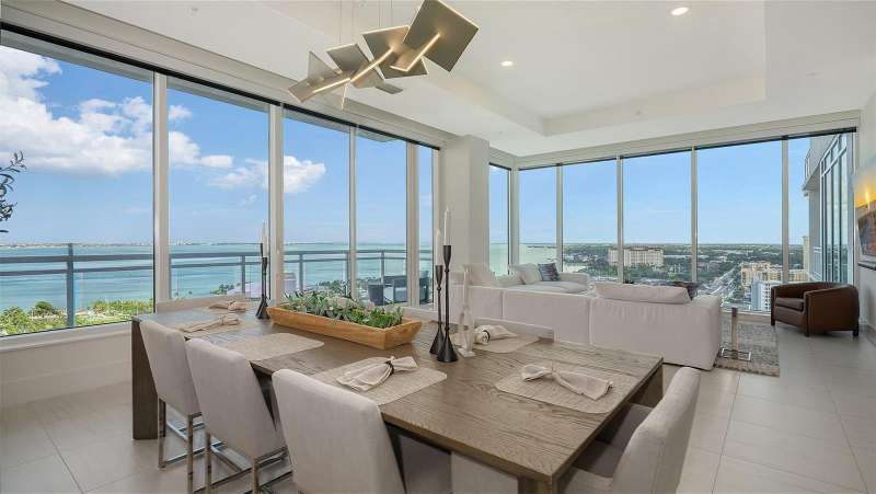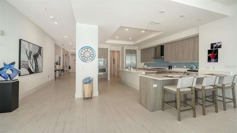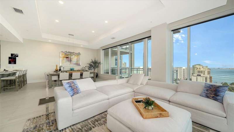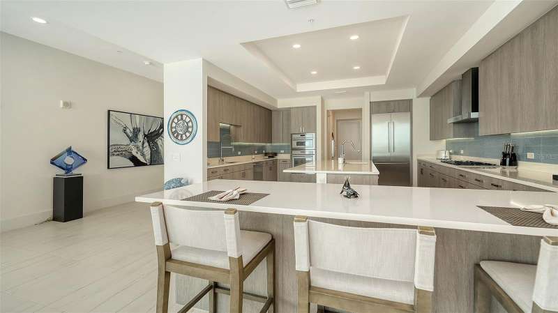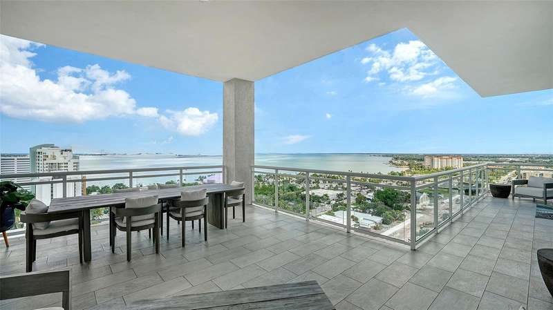 Welcome to the BLVD, where breathtaking views define the home experience! This architecturally stunning, modern condominium stands perfectly positioned in the Bayfront District of downtown Sarasota. Indulge in a luxurious residence soaring above Sarasota Bay, ideally located on the 17th floor, featuring expansive glass walls that offer breathtaking and unobstructed bay views to the north and west, and city views to the east. At this premier address, residents are among the elite who are privileged with an exclusive standard of living. This iconic building offers high-quality interior finishes and advanced coastal construction and design. From the moment you step through the entrance of the private access elevator, the tone is set for the entire space and lifestyle. The flow-through floorplan highlights magnificent bayfront and city views, with impact windows and sliding glass doors leading to several large terraces. Elegant tile flooring and glass railings create a seamless connection between the indoor and outdoor spaces, framing boundless vistas. The expansive great room boasts lofty ceilings, custom lighting, and large tile flooring – ideal for entertaining guests. A culinary showpiece, the kitchen features designer tile backsplash that complements the sleek cabinetry and designer lighting, adding sophistication throughout. An oversized island, complete with high-end quartz countertops and ample storage, anchors the space. For wine enthusiasts and culinary connoisseurs, this remarkable kitchen also features top-of-the-line Thermador appliances with a 6-burner gas cooktop, built-in wall oven, wine fridge, and two spacious pantries with custom shelving. The expansive primary bedroom is complete with two exquisite custom walk-in closets, with a spa-like bath boasting a soaking tub and an oversized glass shower. Two oversized bedroom suites feature private terrace access and luxurious spa-like baths. A powder room and spacious laundry room round out the interior. Quality and comfort are at the forefront, evident with a state-of-the art smart automation system with Lutron lighting, and motorized shades system. Additional highlights include three glass-railed terraces, custom lighting and 8' solid-core doors. BLVD hosts only forty-nine residences and sets itself apart with its unparalleled hotel-inspired amenities and full-time concierge. Residents will enjoy a social club room with a service bar, well-equipped fitness center, conference room, temperature-controlled wine room with private lockable showcases, indoor driving range, and a dog grooming room. The expansive outdoor terrace offers additional outdoor lounge seating and convenient pet facilities. For those seeking ultimate relaxation, the rooftop, home to the best rooftop pool area in Sarasota, features a zero-horizon pool, lounge seating, covered outdoor summer kitchen, and fire pit. 1702 embodies the essence of Sarasota’s lifestyle, where luxury meets sophistication. Strolling on the waterfront, exploring the diverse cuisine, or attending the cultural events in downtown Sarasota makes the BLVD a destination as well as home. And COMING SOON-1000 NORTH Sarasota, an exclusive members-only club located on the bottom floor of the BLVD, and centered in the heart of the city’s cultural corridor. This private retreat will offer elevated dining, handcrafted cocktails, personalized concierge services, and private wine storage, delivering a blend of luxury, comfort, and sophistication.