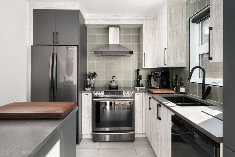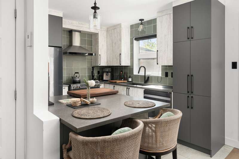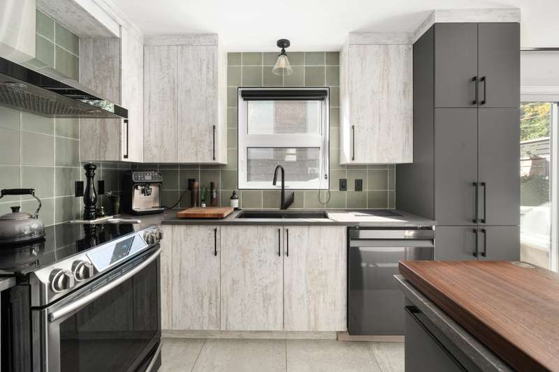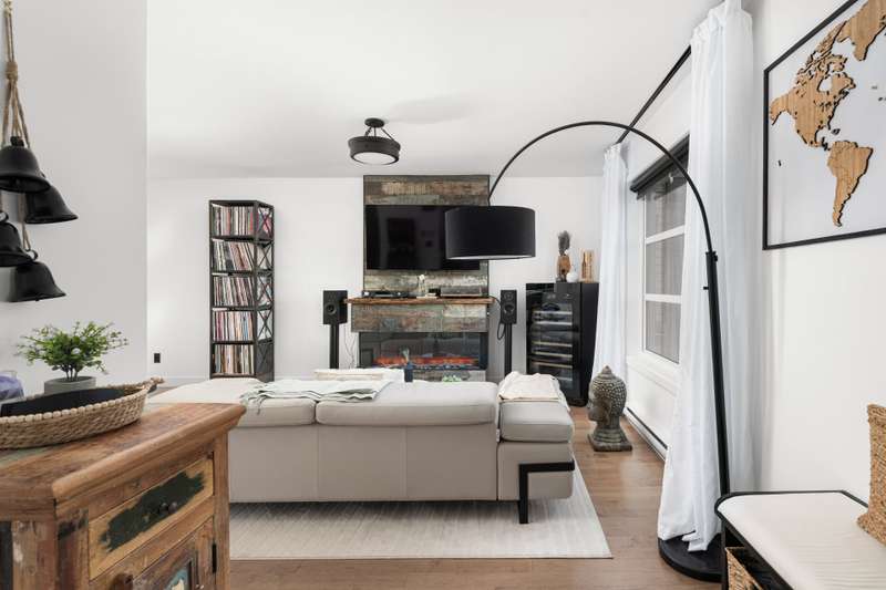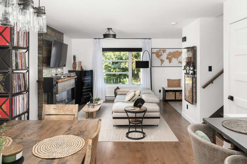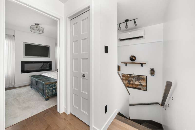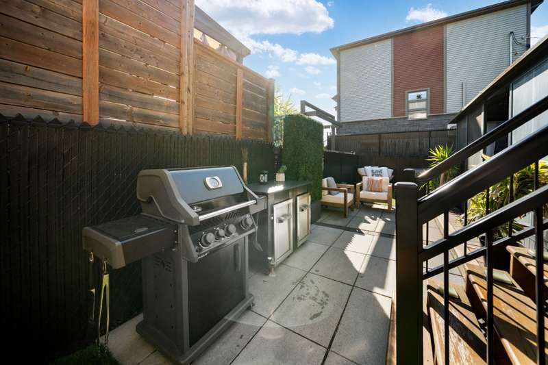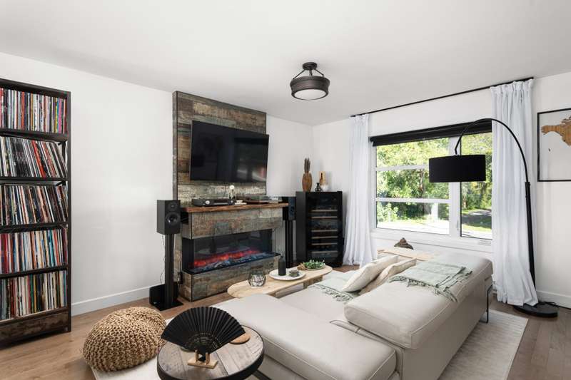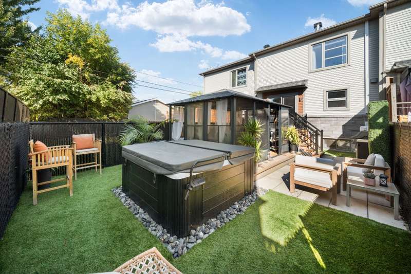 Beautifully renovated townhouse with great attention to detail. Modern kitchen with quartz countertops and heated floors. Inviting living room featuring an electric fireplace and ceramic accent wall, with hardwood floors on the main and second levels. Two spacious bedrooms upstairs and a fully renovated main bathroom with heated floors. Finished basement with a renovated bathroom and family room, designed to easily add two closed bedrooms while maintaining living space. Outside: paving stone, gazebo platform, synthetic grass, and gazebo included. Numerous quality upgrades and improvements over the years. Move-in ready!