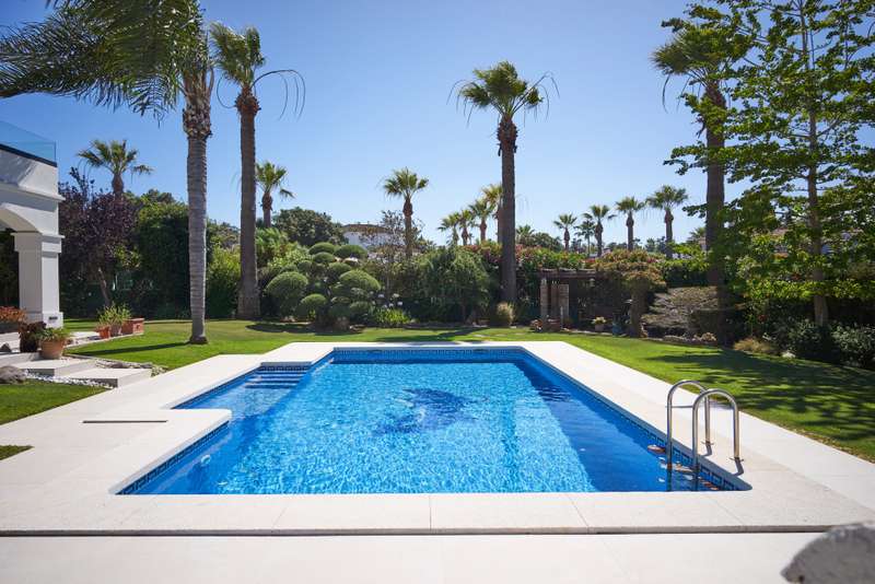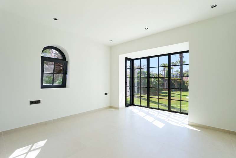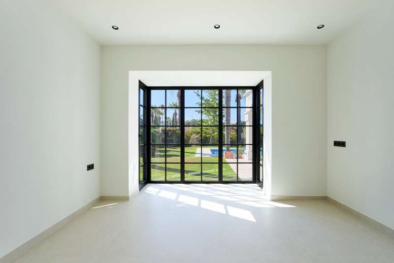 This extraordinary detached villa in Sotogrande Costa has been completely renovated in 2025 in line with the latest architecture and design trends. Generous spaces, abundant natural light and the integration of cutting-edge technology create an ideal setting both for year-round living and for enjoying holidays, combining comfort, aesthetics and functionality. The property offers three bedrooms. On the upper floor is the main suite, a private retreat with en-suite bathroom featuring a walk-in shower and bathtub, creating a true spa atmosphere. From here there is access to a large panoramic terrace with glass balustrade and open views over the lush garden, perfect for a first coffee of the day or to unwind at sunset. A spacious independent walk-in wardrobe, carefully designed to provide a sense of order and luxury, completes this room. The other two bedrooms are located on the ground floor and share a bathroom with shower, making this a very comfortable and practical home for the future; on this same level there is also a guest cloakroom, adding extra convenience to the day area. The main floor is laid out in an elegant open-plan concept that integrates living room, dining room and contemporary designer kitchen. Hidden within the kitchen is access to a multipurpose room and an additional room with bathroom. Large floor-to-ceiling Reynaers panoramic windows flood the interior with light and frame the outdoor scenery, visually linking the house with the garden and pool. The contemporary kitchen includes an integrated double-door fridge, wine fridge and hob with built-in extractor, as well as high-end Neff appliances that ensure efficiency and a first-class cooking experience. All bathrooms are fitted with Hansgrohe sanitary ware and electric underfloor heating, ensuring comfort all year round. In terms of climate control, the villa is equipped with a centralised hot/cold air-conditioning system. A marble-clad fireplace brings warmth and a sophisticated focal point to the living room. Reynaers carpentry guarantees excellent thermal and acoustic insulation. The property also enjoys a carefully landscaped private garden that frames the pool area and several outdoor seating areas. Outside, the villa preserves the classic charm of Andalusian cortijos, harmonised with contemporary lines and details. Its east–south–southwest orientation allows you to enjoy sunshine for most of the day and open views towards the mountains, the surrounding natural landscape, the golf course, the pool and the inner patio. The plot of approximately 1,335 m² accommodates a built area of about 372 m², plus 100 m² of covered and uncovered terraces, offering multiple corners for leisure and relaxation. The location is another of its great attractions: on the Costa del Sol, in a well-established residential area, just a step away from the beach and very close to prestigious golf courses, the marina, shops, services, international schools and the main hub of Sotogrande. The residential complex offers 24-hour security, gated access, electric shutters, reception service, fibre optic internet and excellent transport connections. The property benefits from a garage, covered and uncovered parking areas, independent laundry room and marble floors. Call us to arrange a viewing – it’s ready to move into!