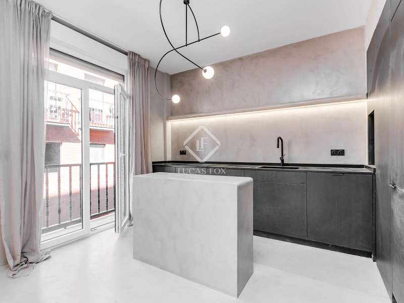 Lucas Fox presents this designer apartment located on the second floor of a residential building in the exclusive Justicia neighbourhood of Madrid. This 81 m² apartment stands out for its contemporary design inspired by the Japandi style, which combines minimalist Japanese elegance with the functional warmth of Scandinavian design. The exterior facing nature of the property allows for excellent natural light throughout the day. The property features a living-dining room with an open kitchen, designed for those who enjoy open, functional spaces. The fluid, modern design of this area makes it ideal for both everyday living and entertaining. The main bedroom features a conveniently designed private bathroom . The second bedroom can be used as a guest room, study , or work area, depending on your needs. The apartment also features a full bathroom with high-quality finishes that reflect attention to detail and good taste. It also features a separate utility room , a rare feature that provides great convenience in everyday life. All rooms are equipped with air conditioning with a hot/cold pump, offering great thermal comfort throughout the year, regardless of the season. The property has a parking space in the same building. This property is ideal for those seeking a unique home, with character, functionality, and a carefully designed interior. The apartment is ideal as a permanent residence or as an investment. Contact us for more information.
