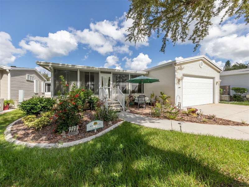 This charming 2003 Palm Harbor manufactured home is nestled along Salt Creek in the Village at Riverwalk, offering tranquil views of the preserve across the street. Featuring 3 bedrooms, beautiful bamboo floors in the living areas and bedrooms, and a spacious island kitchen, the open floor plan creates an inviting atmosphere. Recent updates include a 2023 roof, brand-new AC, and brand new windows throughout. The ensuite master bath boasts double sinks, a walk-in shower, and a large walk-in closet. Inside laundry, a two-car garage, golf cart and turnkey furnishings add to the convenience of this lovely home. The front Florida room, enclosed with acrylic windows, provides comfortable year-round use, while a charming paver patio in the front yard offers a perfect spot to relax. Located in the desirable Village at Riverwalk, residents enjoy access to scenic walking trails, a kayak launch, and lush, mature landscaping, all situated along the beautiful Myakka River in North Port, Florida.