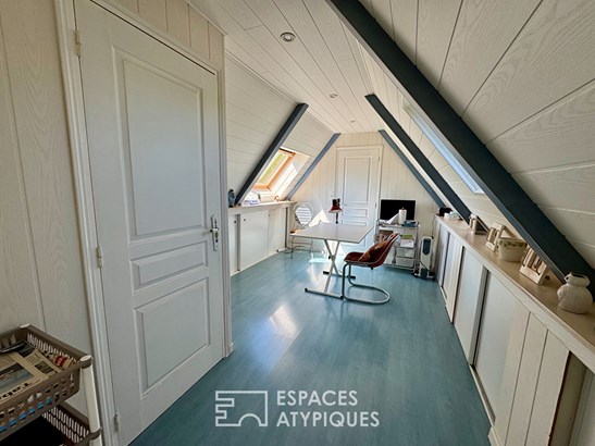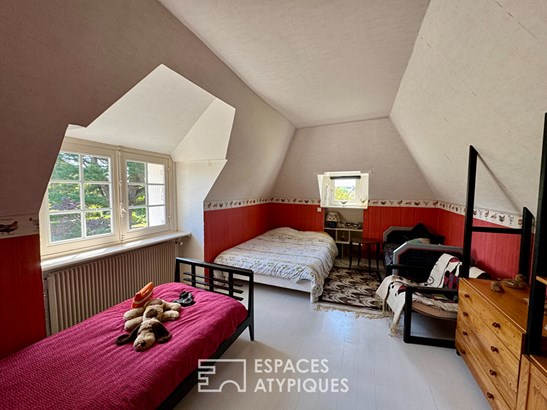 Accessible by a central staircase with vintage charm, the upper floor accommodates two large, bright and well-insulated attic bedrooms under the slope, perfect for a sleeping area, a family dormitory or children's bedrooms. A dual-aspect office, beautifully fitted out in the attic, offers an ideal setting for teleworking or creating a leisure space in complete tranquility. An attic completes the ensemble, offering appreciable storage space or additional development potential.