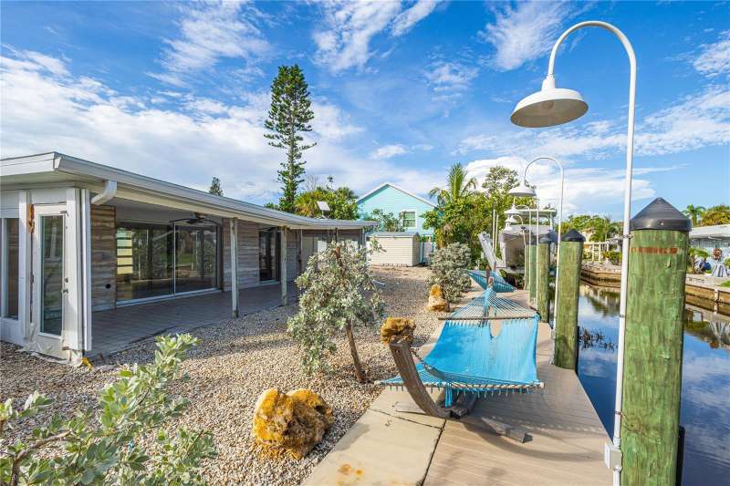 Don't miss the opportunity to build your dream home in one of Longboat Key’s most sought-after, established neighborhoods. Nestled right next to Joan M. Durante Bayfront Park and with beach access across the street you'll have quick access to the pristine, world-renowned Gulf of Mexico beaches. The newly restored seawall (2021) with wide concrete cap and raised dock with nautical dock lights at each pier also features a 10,000 lb lift (elevator type) and is the perfect place to house your boat with quick access to Sarasota Bay and waterways beyond! The lot offers lovely mature trees and plenty of room for a pool. No HOA or CDD. Seller will provide existing house plans from Topsider Homes (any changes to plans would come at the expense of the buyer). Topsider Homes is a luxury builder that offers a design center for picking finishes and is experienced in building in hurricane prone areas. Prefer a renovation project? The existing Old Florida-style 2-bedroom, 1.5-bath ranch home with classic terrazzo floors offers tons of charm and potential. With a bit of vision, it could become a cozy primary residence or an income-producing rental.