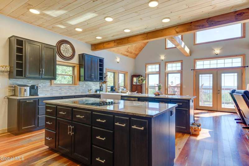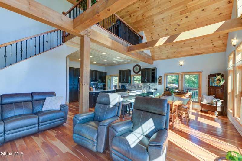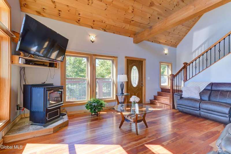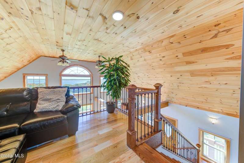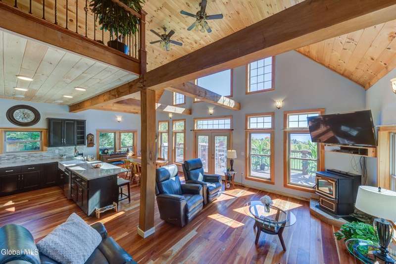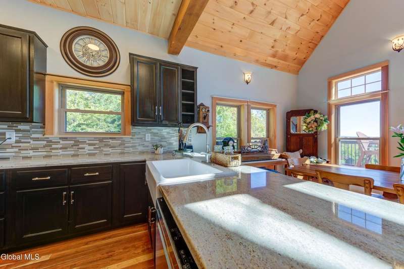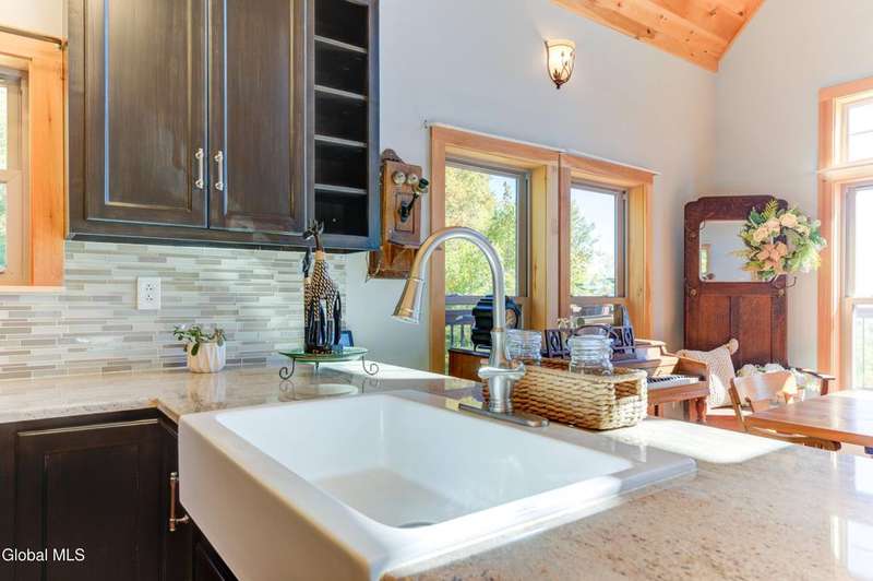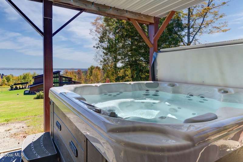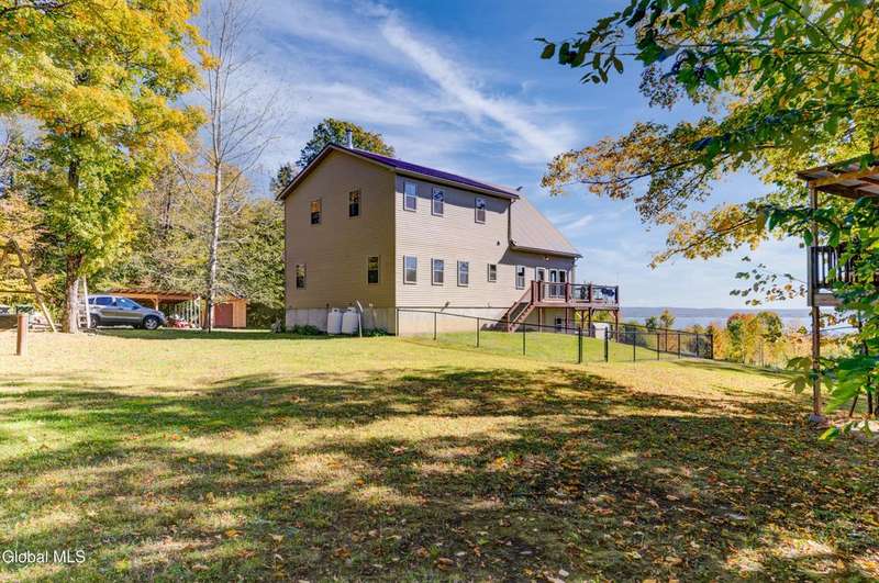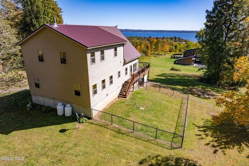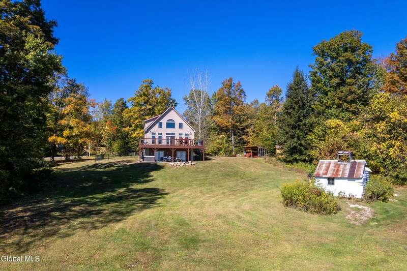 Stunning Lake & Mountain Views! Perched high on a ledge overlooking the Great Sacandaga Lake, this custom Chalet-style home sits on over 10 acres with a 10' beach permit a short drive away for lake access. Tucked away on a private dead-end road in the Mayfield School District, this 4-bedroom, 3-bath home offers the perfect blend of seclusion and convenience.Inside, the soaring vaulted ceilings and wall of windows in the Great Room showcase breathtaking lake and mountain views. The gourmet kitchen features custom hand-crafted cabinetry, granite countertops, and a spacious breakfast bar?a perfect gathering place for family and friends. A full walkout lower level provides additional living space potential, ready for your finishing touches. Step outside to the expansive wraparound deck, the ideal place to entertain or simply relax surrounded by nature. Unwind on the covered patio in the newer hot tub?perfect for soaking in the peaceful setting after a long day. A true Adirondack retreat with endless possibilities!