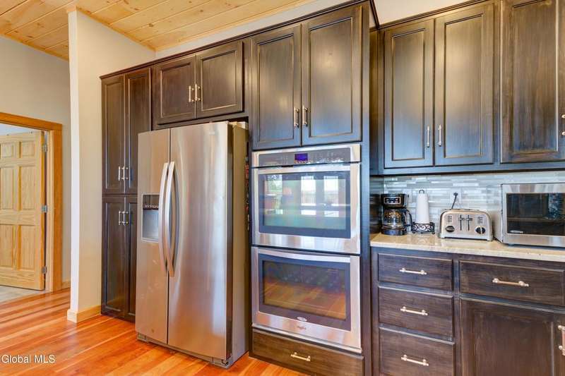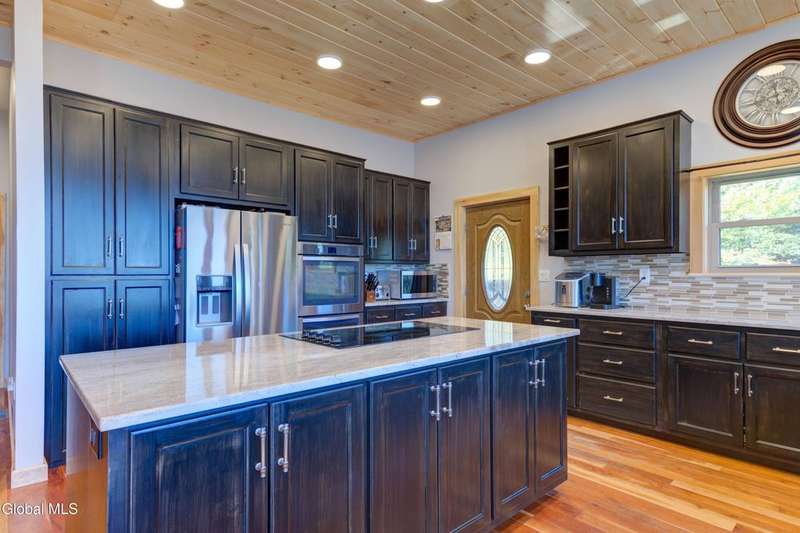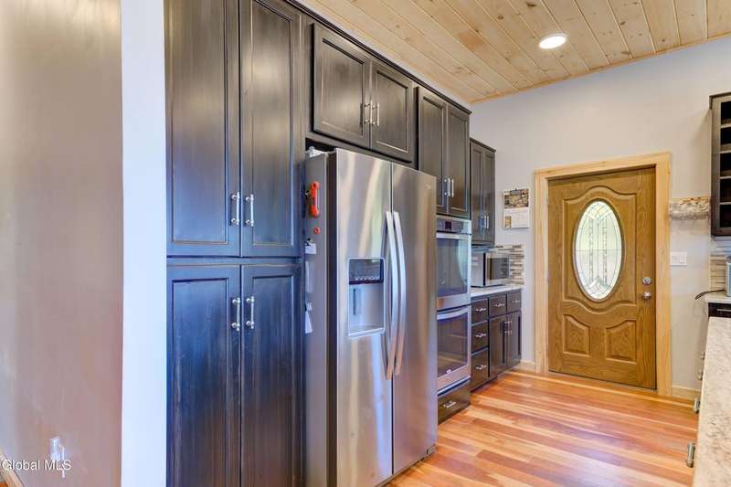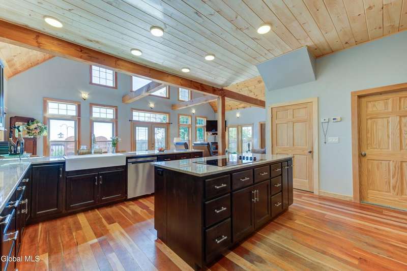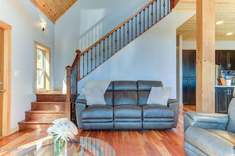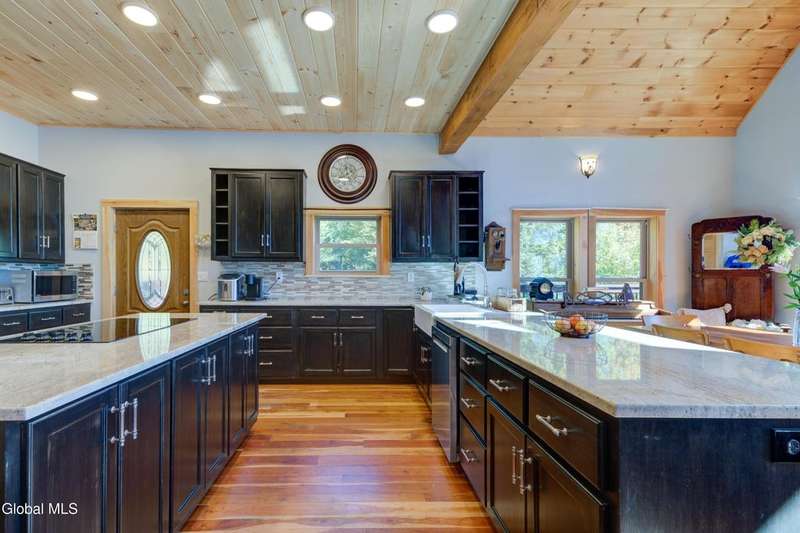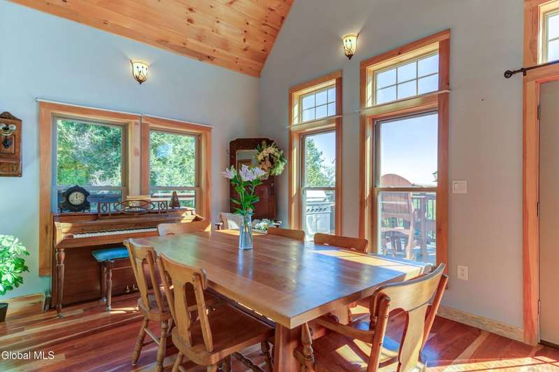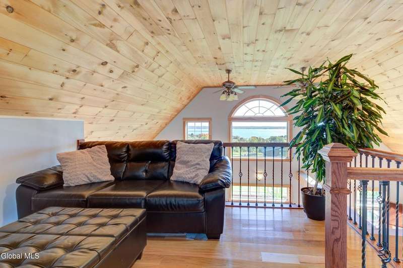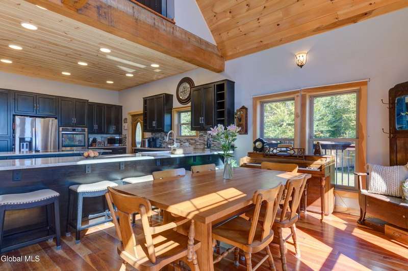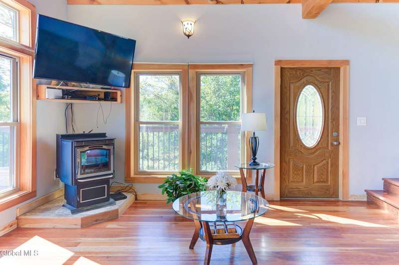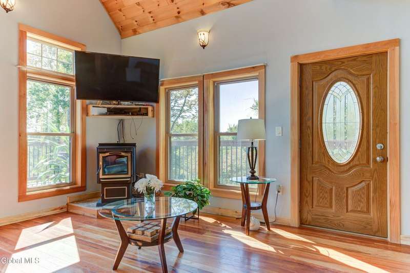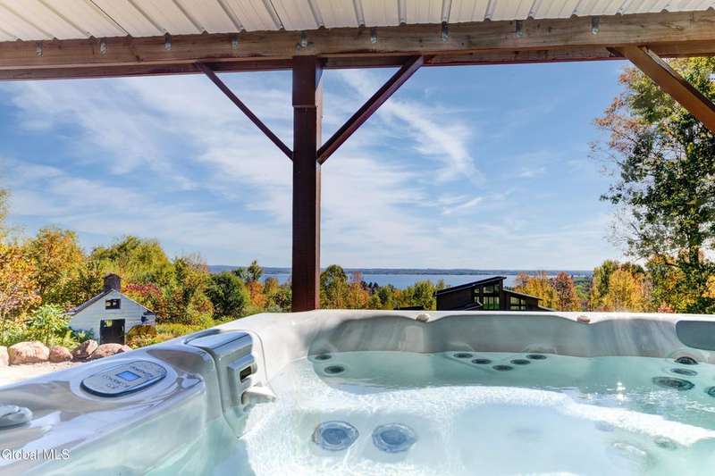 Stunning Lake & Mountain Views! Perched high on a ledge overlooking the Great Sacandaga Lake, this custom Chalet-style home sits on over 10 acres with a 10' beach permit a short drive away for lake access. Tucked away on a private dead-end road in the Mayfield School District, this 4-bedroom, 3-bath home offers the perfect blend of seclusion and convenience.Inside, the soaring vaulted ceilings and wall of windows in the Great Room showcase breathtaking lake and mountain views. The gourmet kitchen features custom hand-crafted cabinetry, granite countertops, and a spacious breakfast bar?a perfect gathering place for family and friends. A full walkout lower level provides additional living space potential, ready for your finishing touches. Step outside to the expansive wraparound deck, the ideal place to entertain or simply relax surrounded by nature. Unwind on the covered patio in the newer hot tub?perfect for soaking in the peaceful setting after a long day. A true Adirondack retreat with endless possibilities!