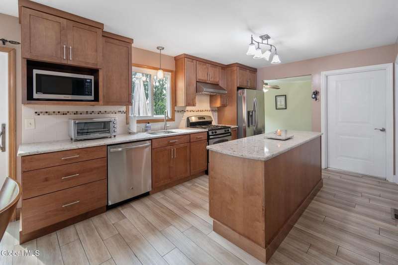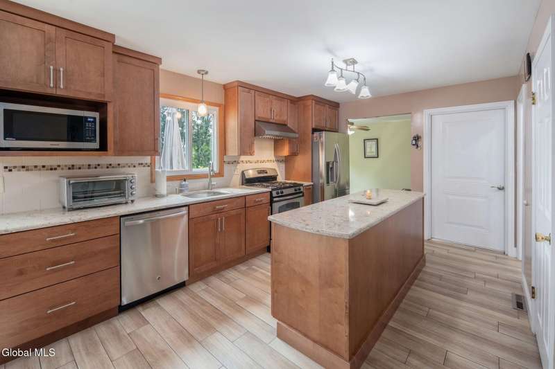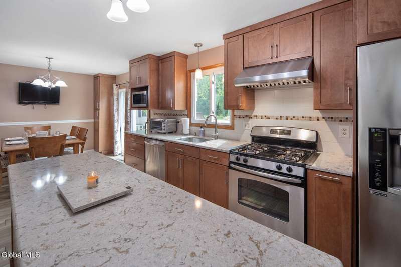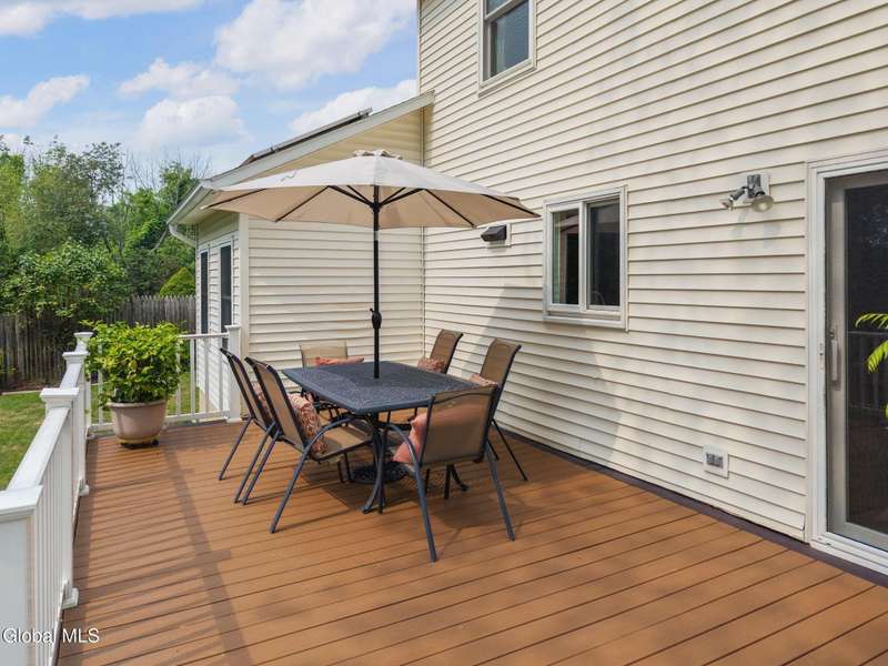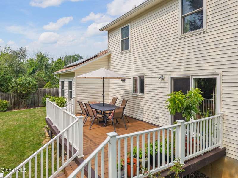 Meticulously maintained by its original owner, this Colonial is conveniently located in the award-winning North Colonie school district. The completely remodeled kitchen with its soft close cabinets, stainless steel appliances and Quartz countertops are sure to WOW you! Boasting 2 full baths already updated for you. Enjoy the expansive composite deck for relaxing with your morning coffee or entertaining large gatherings. Take advantage of the green feature of OWNED solar which offsets your electric bill.