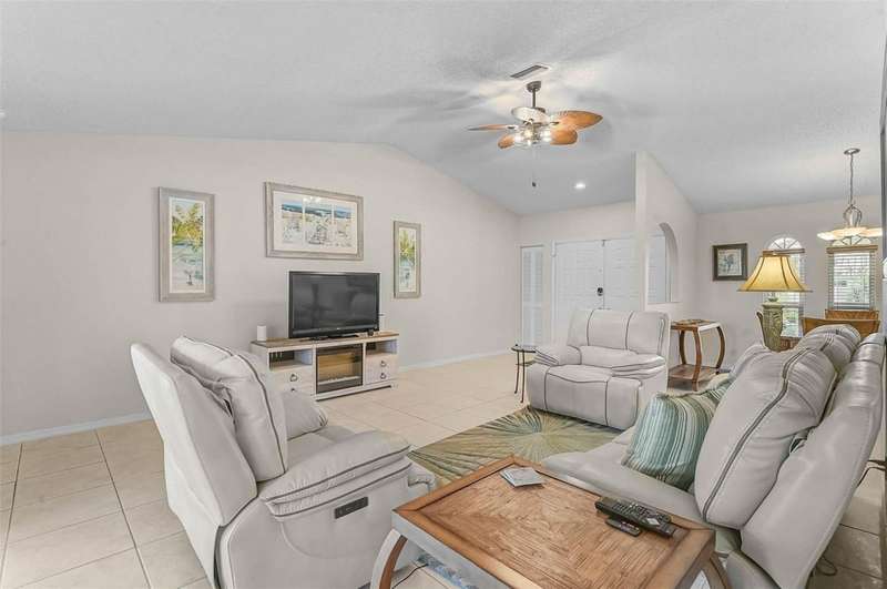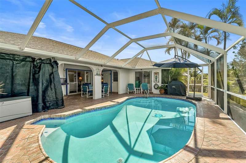 Welcome to this beautifully updated 3-bedroom, 2-bath pool home designed for relaxed Florida living. With major improvements completed throughout the home, this property offers comfort, style, and confidence for first-time homebuyers, those relocating for a fresh start, or anyone seeking the true Florida lifestyle. Recent updates include a 2023 roof, 2023 impact windows, 2023 solar pool heating system, 2022 repiping, a 2021 water heater, and a newer HVAC system. The home is also available fully furnished, providing an easy and convenient move-in option.The spacious primary suite features two walk-in closets, a private slider leading to the pool area, and an en suite bathroom with dual sinks, a large garden tub, and a separate shower. Bedroom three also includes a slider to the pool, offering flexibility for guests, extended family, or a home office with direct outdoor access. The second bathroom has pool access.The family room is bright and inviting with cathedral ceilings, a gas fireplace, and a wet bar, making it ideal for entertaining and everyday comfort. The kitchen includes granite countertops, newer cabinetry, a large peninsula for extra seating and prep space, and a built-in desk area. The kitchen opens seamlessly into the family room, while the combined living and dining room features sliding glass doors that lead to the screened lanai and pool deck.Step outside to your own private tropical oasis. The fully fenced yard is surrounded by lush landscaping, and the expansive screened-in lanai with paver pool deck offers an ideal setting for outdoor dining, relaxing, or entertaining around the solar-heated pool.The home is ideally located near Charlotte Harbor, the Sunseeker Resort, Punta Gorda Airport, beaches, parks, fishing, boating, shopping, and restaurants. Baseball fans can enjoy Tampa Bay Rays spring training at nearby Charlotte Sports Park, golfers have year-round access to Port Charlotte's scenic courses, and outdoor enthusiasts can explore the 380-acre Tippecanoe Environmental Park with its seven miles of trails. Port Charlotte Beach Park offers another excellent spot for recreation and relaxation.This property combines thoughtful updates, a spacious layout, and an exceptional location-perfect for first-time homebuyers, those relocating, or anyone ready to enjoy the best of Florida living.
