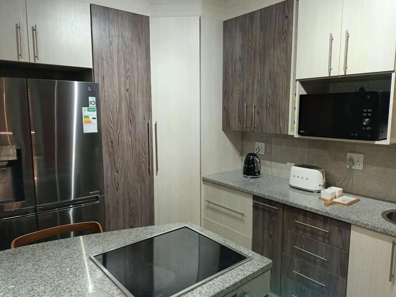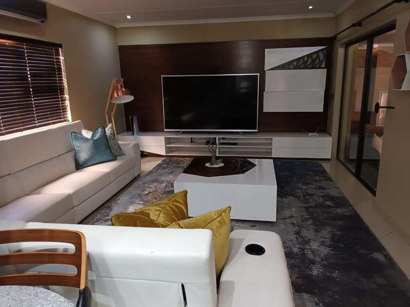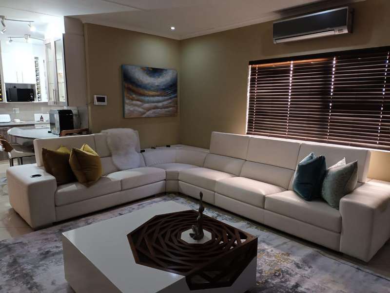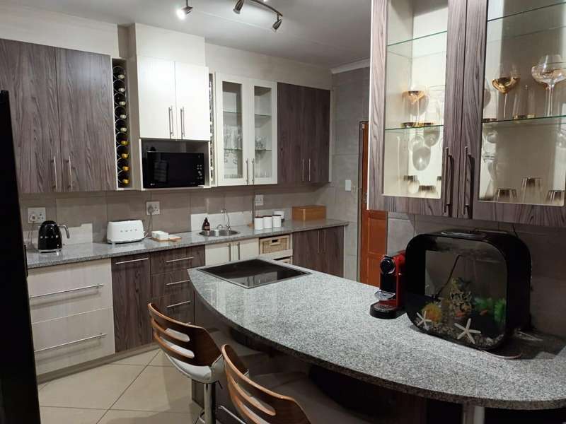 Experience modern living at its finest in this exquisite home, nestled within a secure complex in an upscale area. This residence epitomizes elegance and functionality, featuring three spacious bedrooms and two well-appointed bathrooms, one of which is en suite. The thoughtful design includes a comfortable lounge for relaxation and a formal dining room perfect for hosting family gatherings and dinners. The entertainment area, complete with a built-in braai, ensures effortless entertaining for guests and family alike.
