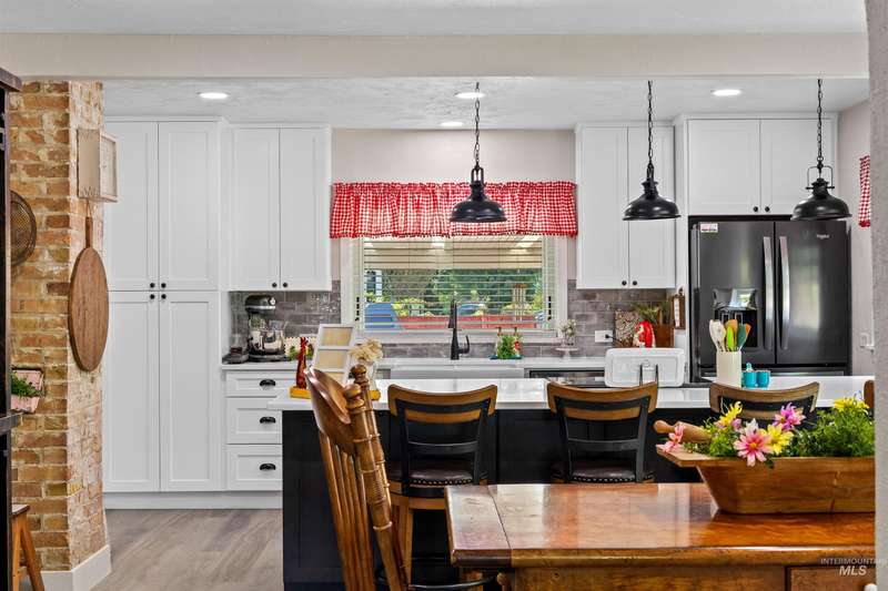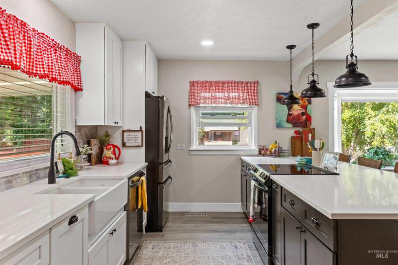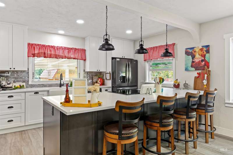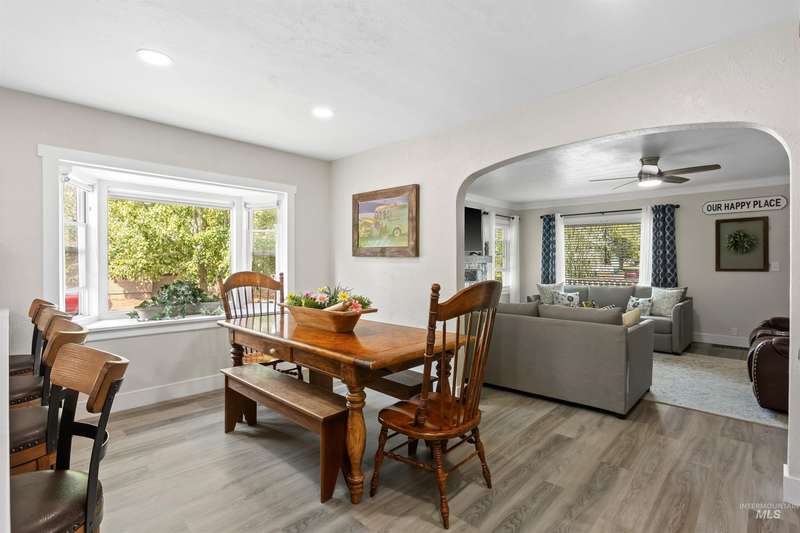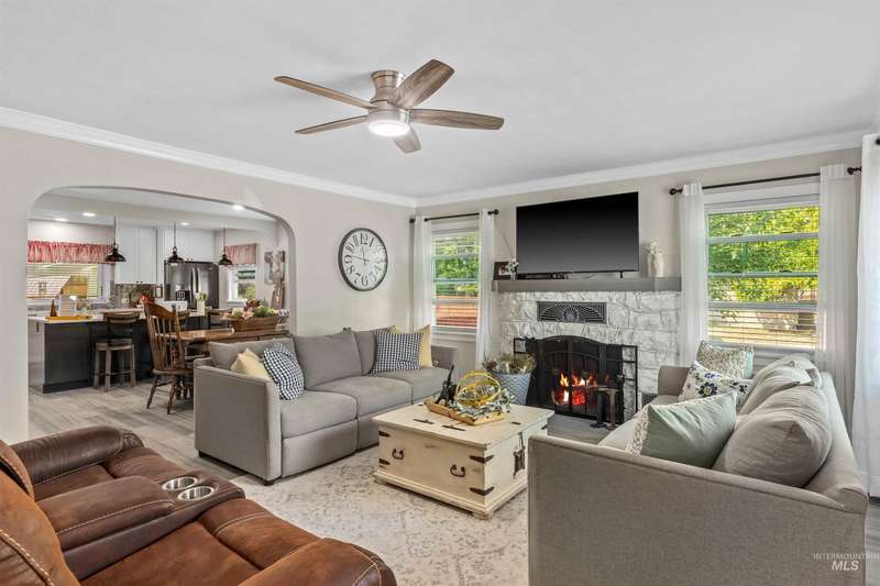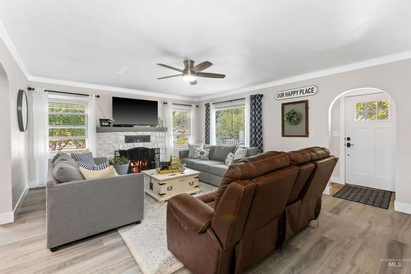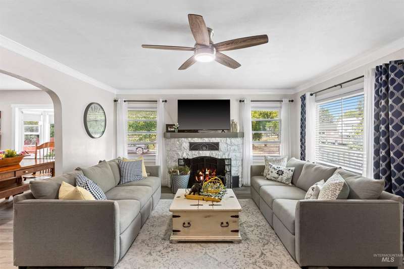Charming 1936 cottage reimagined for modern living! This spacious 6 bed, 3 bath home offers 3,460 sq ft on a .20-acre corner lot just seconds from downtown Payette, local parks & the library. Step inside to arched doorways, bay window dining, cozy wood-burning fireplaces & exposed brick paired with today’s upgrades: brand-new HVAC, new gutters with leaf filters, new windows, LVP flooring & a remodeled chef’s kitchen with quartz countertops, huge island & new appliances. Main level includes bright living & dining, plus 2 bedrooms & bath. Upstairs is a private primary suite retreat with updated bath & full walk-in closet room. Finished basement adds a 2nd living area, fireplace, 3 bedrooms, bath & laundry. Outside enjoy the storybook front porch, covered patio, fenced yard, extended driveway with RV parking, oversized 2-car garage & a 16x20 fully insulated shop with 220V power, heating & cooling, plus a 12x8 shed for extra storage.