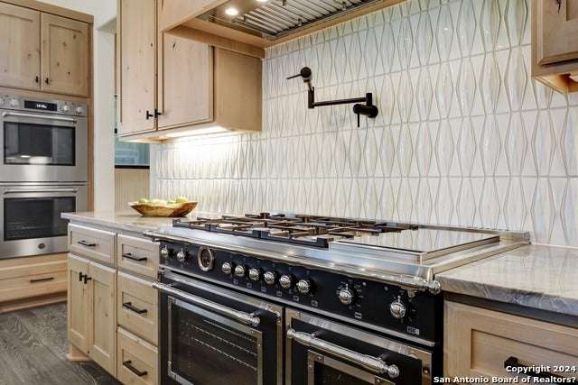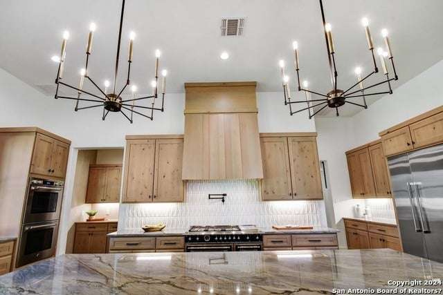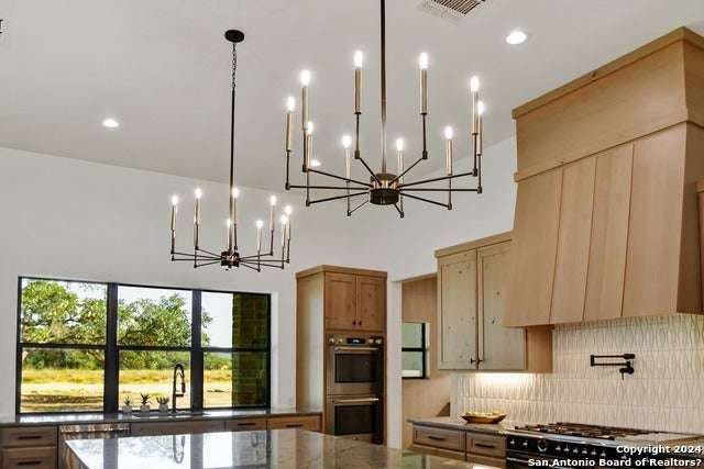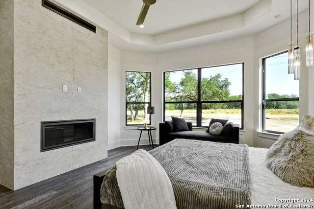 TO BE BUILT! Exquisite craftsmanship in this Journey Homes one story custom contemporary farmhouse in the desirable Belle Oaks Ranch. Over an acre tree studded lot offering a beautiful 3 bedroom, 3.5 bath, 3 car garage and 3995 square feet. The drama begins with a 8-10' double steel/glass doors setting the stage for the custom details that await a discerning home owner. Bright and airy space is illuminated by thoughtfully placed windows, custom modern lighting throughout and soaring ceilings making the open concept living an expected luxury. A double door entry to the private study awaits . Entertainers dream in the open living, kitchen, and dining space with visuals of your guests from every angle. Glass encased wine galley overlooks the dining area offering true designer ambience for the the most discerning wine connoissuer. The floor to ceiling stone fireplace creates the ambience in the living area which opens to a view of the kitchen and dining space. Wood beams and rich brown tones eliciting cozy warm ambience throughout. The chef's kitchen boasts Italian imported Bertazzoni appliance package, huge island workspace, breakfast bar, gas cooking, SS refrigerator w/double freezer drawers, walk in pantry, soft close custom cabinetry, and deep sink. The dining area allows for a large seating area, contemporary double chandelier. Huge walk through custom pantry every chef dreams of. The split primary retreat offers bay windows with a view of the majestic trees and a spa bath with huge walk in shower and soaker garden tub. The piece de resistance is the luxurious custom California Closet in the primary retreat.There are two additional guest suites both offering a full private spa bath. This completes the masterful layout. Well.......almost. This one story plan offers a large game room with bar/mini kitchen accented by designer tile and luxurious counters and fixtures. Additional luxurious finishes include raised tray ceiling treatments, tongue in groove wood ceiling highlights, and designer tile throughout. Through the 4 panels of wide sliding windows across the back of the home is an oasis boasting a spacious covered patio w/cedar lined ceiling, floor to ceiling stone fireplace, and fully outfitted outdoor kitchen. Complete your oasis in the over one acre level tree dotted back yard and lovely green space with the perfect setting for a pool. Comal ISD, and community amenities complete the package of the meticulous detail of this gorgeous Journey Home.