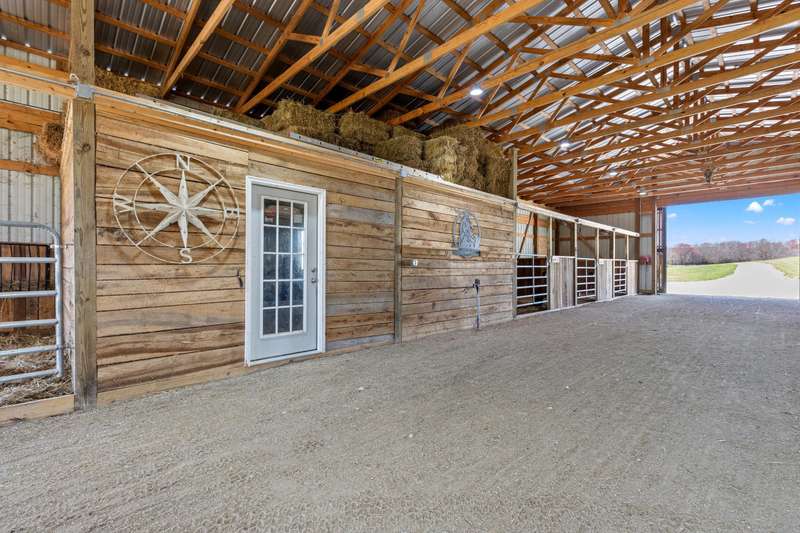 Discover this exceptional 44+ acre farm in Laurel County featuring rolling hills, scenic water views, and nearly 10,000 square feet of thoughtfully designed living space, newly constructed in 2022. A two-story foyer welcomes you into an expansive living room centered around a gas fireplace. The gourmet kitchen showcases custom cabinetry, quartzite countertops, a 48-inch gas range with pot filler, double ovens, and two dishwashers. Additional conveniences include a walk-in pantry with wet bar, a mudroom with built-ins and dog kennels, and a laundry room with chute. A den off the living room provides flexible use with a wood stove and space suited for a music area or office. The primary suite offers a cozy fireplace, private patio access, a spacious walk-in closet with its own laundry area, and an ensuite bath featuring a tiled shower and custom copper soaking tub. Upstairs, five generously sized bedrooms share three full bathrooms and an additional den. The finished basement extends the living space with an in-law suite, gym, theatre room, and unfinished storage area. Outside, the property includes a three-car attached garage plus an oversized two-car detached garage with 12-foot doors. Equestrian amenities include a 12-stall barn with wash bay, feed and tack rooms, multiple paddocks, and space for future expansion. The grounds also feature dirt bike trails, a chicken coop, a private sauna house, and open acreage ideal for recreation or future use. Enjoy the best of horse country living with this beautifully crafted property.