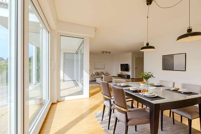 If you want to escape the hustle and bustle of the city, you will find a green retreat here at Frauenkopf - in one of Stuttgart's most sought-after residential areas, just a few minutes' drive from the city center. On around 130 m² of living space, a home is being created that opens up a wide range of possibilities for families, couples and best agers alike. A large gate provides access to the two garage parking spaces. From there, you can enter the building under cover, where the elevator takes you comfortably and barrier-free to the second floor. As you enter the apartment, a bright, spacious room opens up with an immediately inspiring atmosphere. The floor-to-ceiling windows facing south extend the view to the terrace and garden and create a feeling of living that harmoniously combines indoor and outdoor areas. The living and dining area forms the heart of the apartment - ideal for relaxing hours or stylish get-togethers. Separate from this are three bedrooms and a large bathroom - a clear layout that creates privacy and clarity. The rooms are suitable for use as bedrooms, children's rooms, home offices or guest rooms. Parquet floors and underfloor heating underline the pleasant living quality. Not only the location, but also the spacious terrace with adjoining garden makes it possible to experience nature on a daily basis - whether as a retreat, play area or space for socializing. An apartment that impresses with its location, well thought-out floor plan and special atmosphere - and thus offers a home of lasting value in the long term. Arrange a viewing today and see the benefits of this property for yourself.