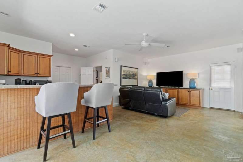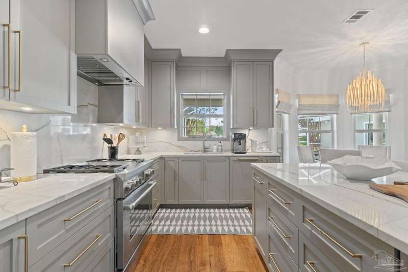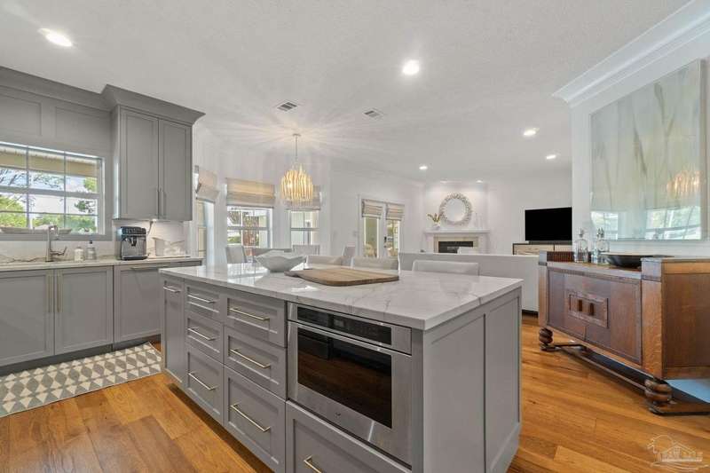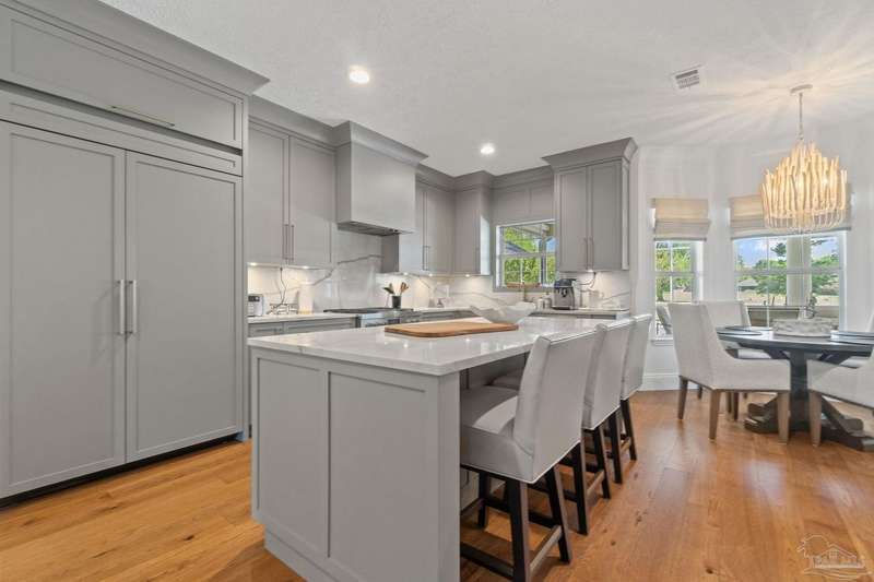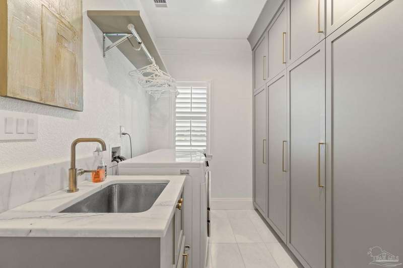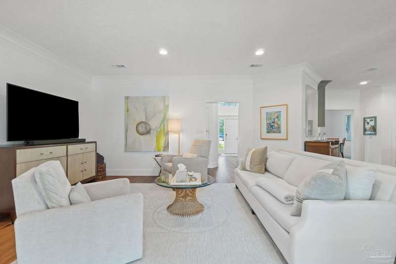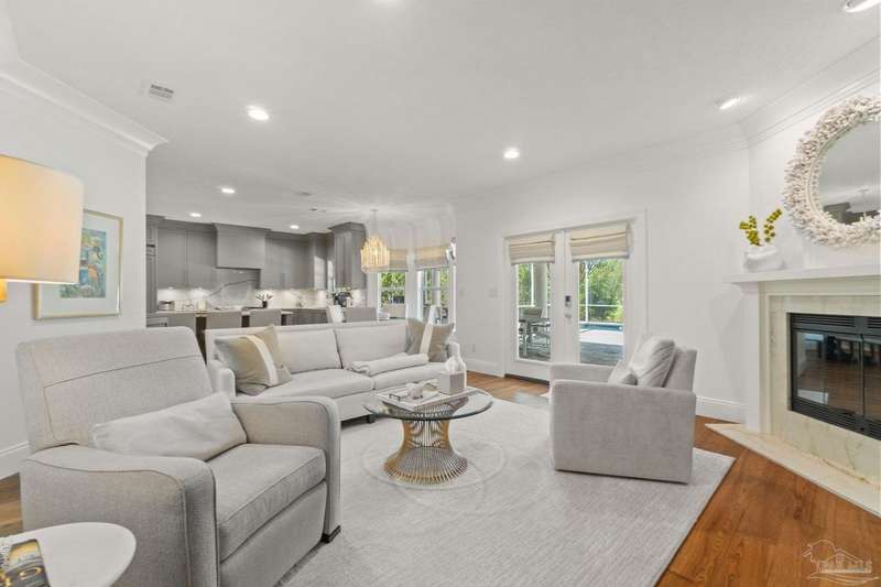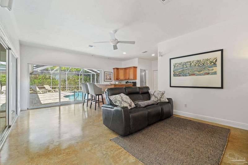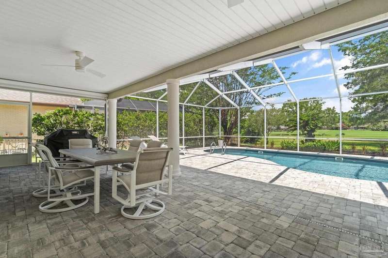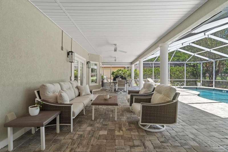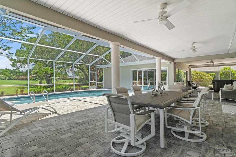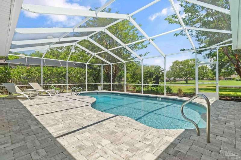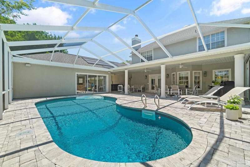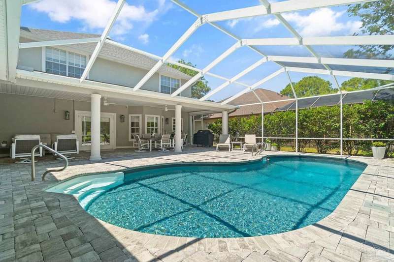 Separate guest house, x-flood zone, 3 car garage, located on the golf course. This absolutely stunning, thoughtfully designed contemporary pool home in Players Club with low HOA dues will take your breath away. From the impressive exterior to the patio's basketweave pavers, no design detail has been overlooked. Walls of windows capitalize on the abundance of natural light within the open concept living, dining and kitchen areas, catering to the art enthusiast and entertainer. Appointed with oak hardwood flooring, 12' high gloss crown molding, gas fireplace with Quartzite surround, and modern lighting. The kitchen is culinary perfection. Custom CDC Woodworking cabinetry, brushed gold hardware, Quartzite countertop and backsplash, High-end JennAir, Asko and ZLine stainless appliances, wine refrigerator, 5 Burner gas cooktop and large pantry. In addition to seating, the island maximizes both prep and storage space, while the eat-in kitchen is perfect for casual dining allowing for the formal dining room to cater to more intimate hosting. The living room flows directly onto the gorgeous pool and screened all season patio, framing views of Tiger Pointe's 11th hole fairway creating an extension of the home's interior space. Auto shades provide privacy, while the surround sound sets the tone for relaxing and Alfresco dining. The guest house features stained concrete floors, Efficiency kitchen, charming bedroom and bath; offering privacy and flexibility to be utilized by guests, as an exercise space, artist studio or simply the ultimate pool house. The light-filled master bedroom is a tranquil retreat with tray ceilings and spacious spa-like en-suite bath appointed with double vanity, framed full wall mirror, glass pendants, and soaking tub. Each additional bedroom and bathroom mirrors the home's high end design aesthetic. Not to go unnoticed, the garage offers ample space for vehicles, storage and golf cart.