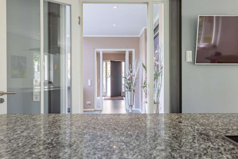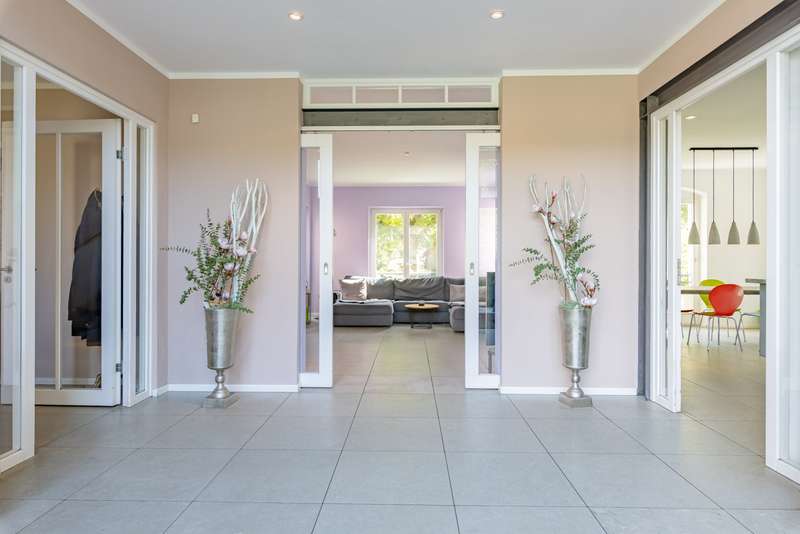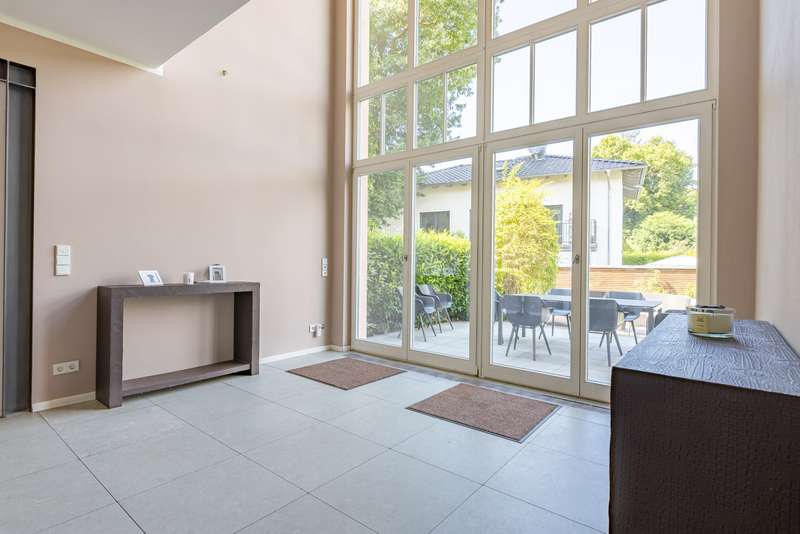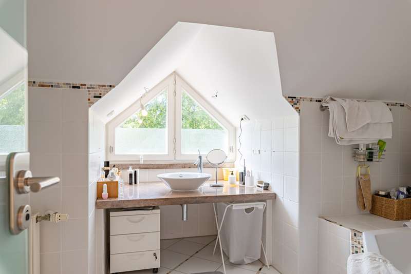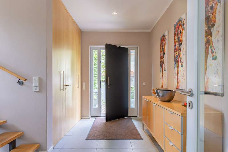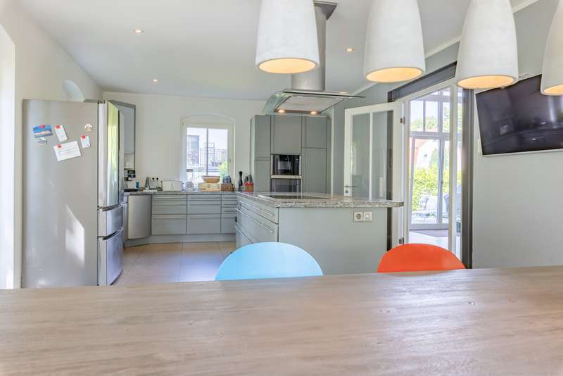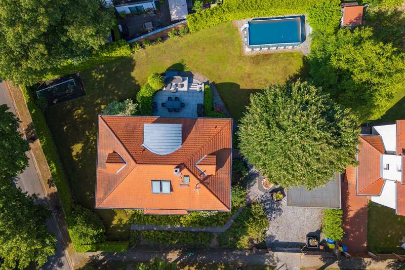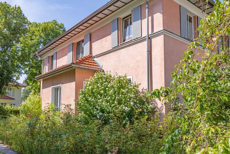 This spacious detached house is located in the popular Musikerviertel, a quiet, green residential area on the outskirts of Potsdam (Babelsberg). The house offers a living space of approx. 236 m² and is particularly suitable for larger families or living and working due to its many rooms. The lovingly landscaped plot has a size of approx. 1146 m². The house in the style of a classic 1930s villa was completely renovated at the beginning of 2000. It has a practical layout with beautiful sight lines and lots of glass, which offers many beautiful sight lines The first floor is divided into 3 rooms, a large eat-in kitchen and a guest WC. A highlight is the room with an open gallery and a large window element, which is centrally located to the garden. From here you have access to the spacious, tiled terrace with a beautiful view of the garden. The floors on the first floor are covered with large-format tiles. Heating is provided by underfloor heating. The upper floor is divided into 4 rooms, an open gallery and a full bathroom in need of renovation. In the converted attic there is an entrance hall, a bedroom or guest room and a bathroom with bathtub. Other features include high ceilings, an alarm system and shutters on the upper floor. There are plenty of storage rooms in the basement. The beautifully landscaped garden with fountain and irrigation system invites you to linger outdoors. Generously laid out rose beds line the house. A double carport and an electric access gate are available. The property is quietly located in the popular Musikerviertel, a residential area characterized by attractive houses and villas built in the 1920s. The location is ideal for commuters thanks to the good connections to the surrounding highways, Berlin-Brandenburg Airport and the federal capital Berlin. The house is located just a few meters from the Berlin-Wannsee city limits and close to the Parforceheide park, which is ideal for long walks, jogging and other activities. The house is suitable for large families as well as for living and working. The light-flooded rooms create a pleasant living atmosphere. The house is currently rented out. The tenants will move out at the time of handover.