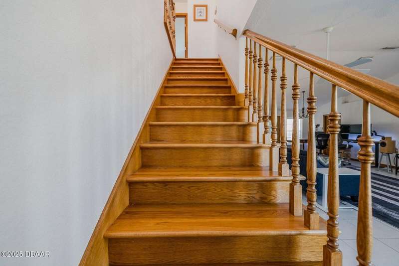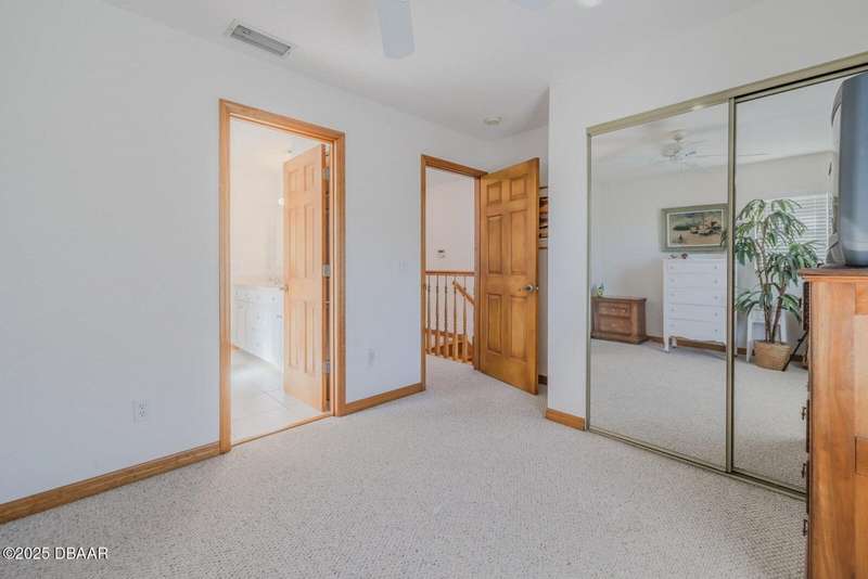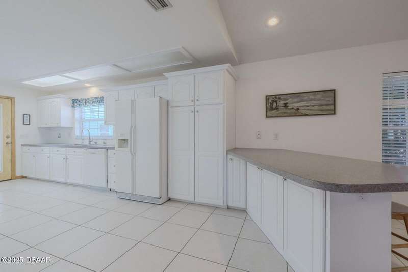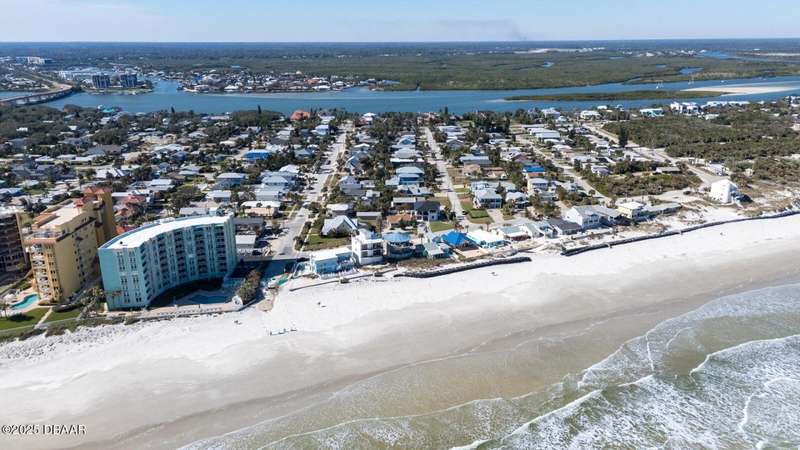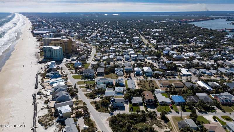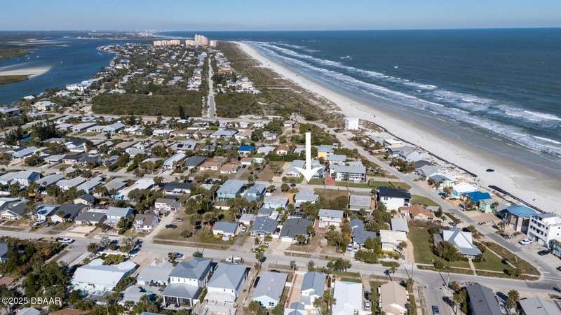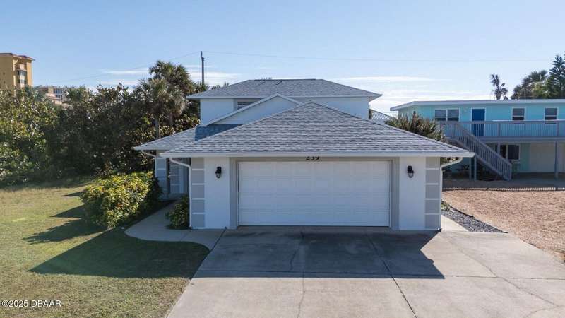 Location, location, location! Discover coastal living at its finest in this immaculate 3BR/2.5BA, 2 CAR GAR home, perfectly located just 5 houses from the beach & only 8 blocks to vibrant Flagler Avenue shops & restaurants. Drive your golf cart, ride your bike or walk to the beach access only 1 block away! Beautifully maintained modern home has an open floorplan with high vaulted ceilings & an inviting atmosphere for entertaining or relaxing. Built in 1998, one of the spacious bedrooms is downstairs & is large enough to be a master BR. It features wood floors & a gorgeous bath with tiled shower & two vanities. This bedroom has a door to the expansive rear lanai which has a cozy wood ceiling & beautiful tiled floors! Private outdoor shower & fenced back yard add to the desirability of this fabulous home. Upstairs you'll find the master bedroom, a luxurious tiled bath and another spacious bedroom. Upgrades include newer roof & water heater in 2021, newer A/C units & both drywood & subterranean termite bonds. Current tenant will consider staying month to month. Whether you're seeking a permanent residence or a vacation retreat, this home combines elegance, comfort and an unbeatable location!