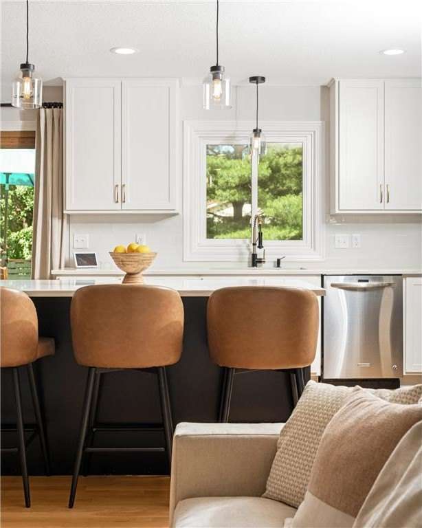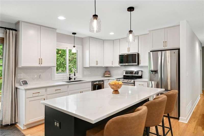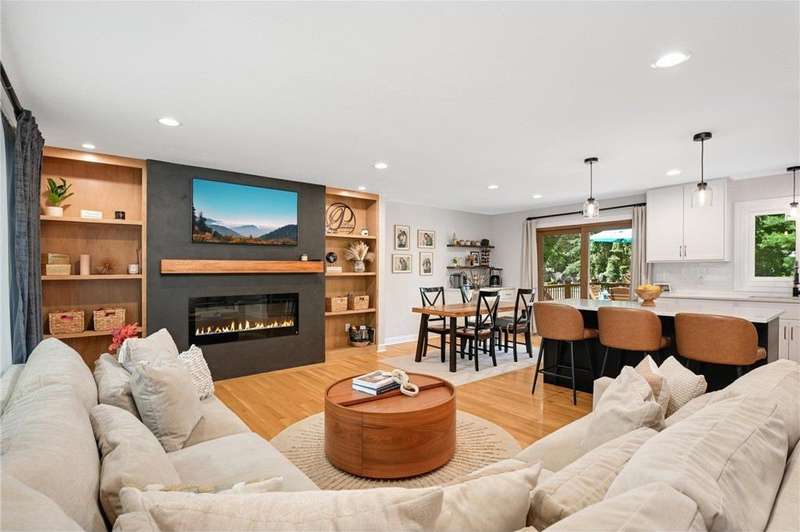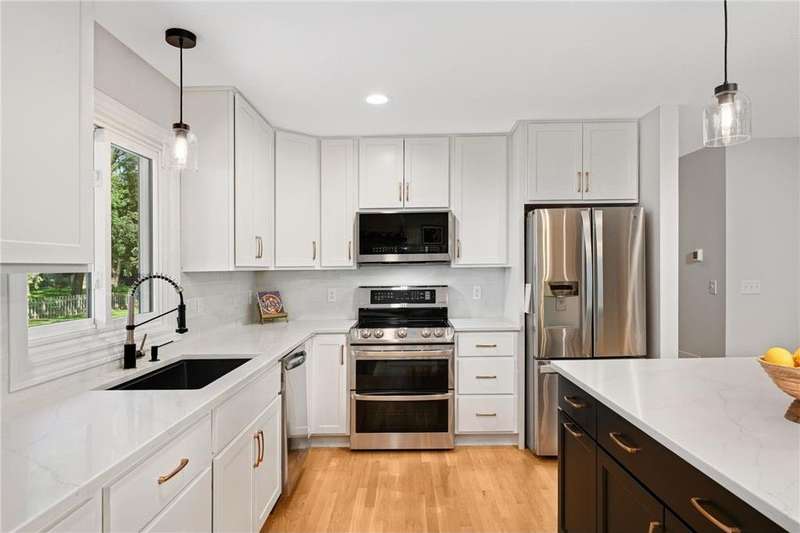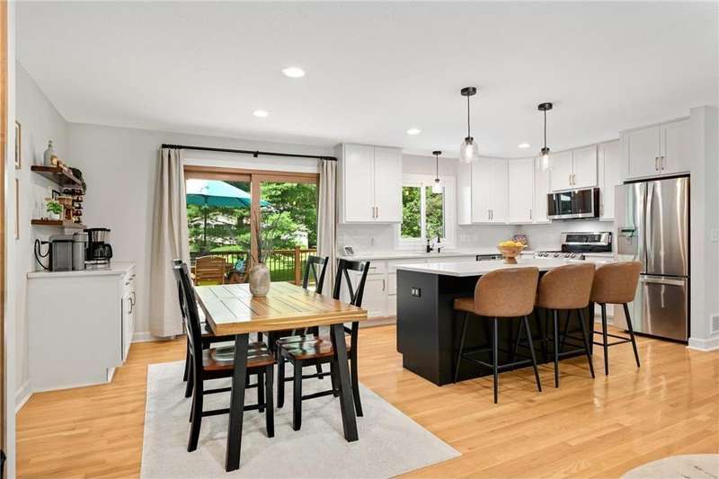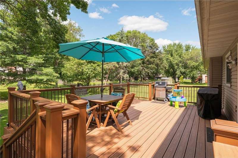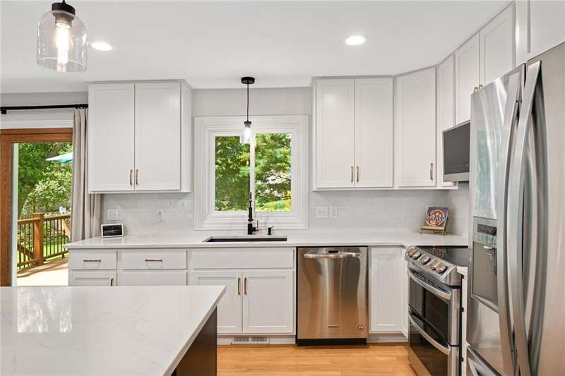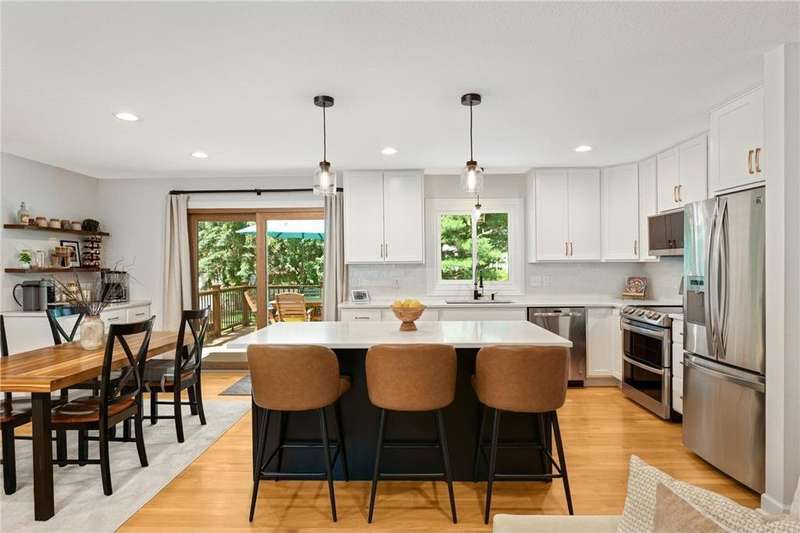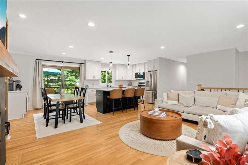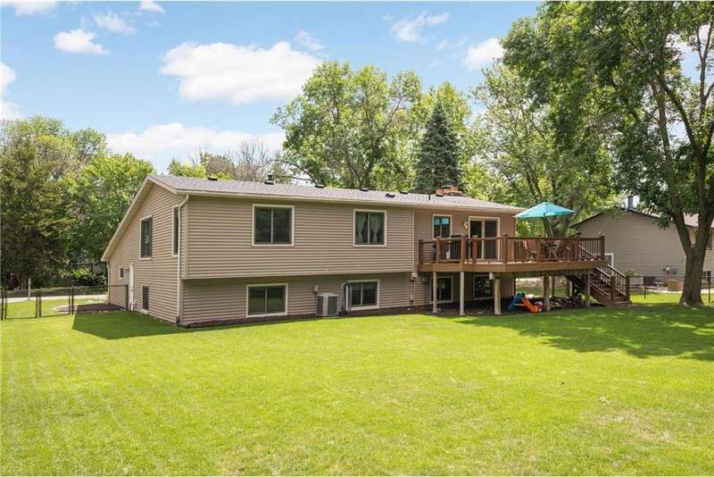 Outstanding remodel in 2023 that will bring the “WOW” factor. Stunning kitchen with custom enamel cabinets, oversized center island with bar stool seating. Gorgeous quartz countertops throughout, custom tile backslash. Convenient niche for your coffee bar accented with floating shelves. Stunning white oak wood floors throughout main living areas. Exceptional fireplace wall done in roman clay with electric fireplace flanked with the gorgeous white oak bookshelves with accent lighting as well. Dining area is adjacent to kitchen and offers sliding patio door spacious maintenance free deck/railings. This picturesque backyard is fenced and offers great level play area with a firepit. Wonderful sized owner’s bedroom that offers spacious closet and beautifully remodeled private owners ¾ bath. Additional two bedrooms on the upper level and updated full bathroom with deep tub. Inviting lower-level family room with rock stone gas fireplace, amazing entertainment space. Additional two large bedrooms and rough in for ¾ bath. Inviting spacious foyer with space for bench. Large laundry/utility. Exceptional home with incredible updates that you will not want to miss. 2025 new Titan XT Premium Architectural Shingles, 2023 home remodel upper level, composite decking, newer windows, furnace, 2023 updated electrical to 200 amps, 2020 new furnace. Located on a cul de sac location. Fantastic location to French Park, many trails, shopping and restaurants.