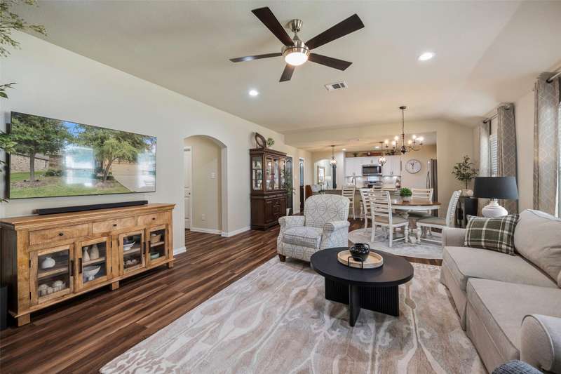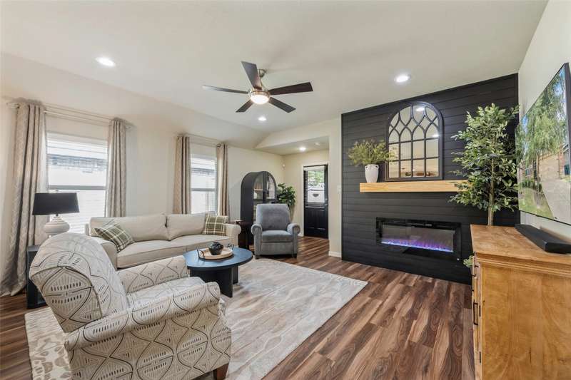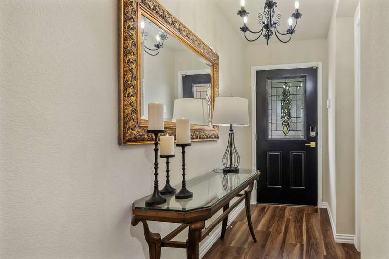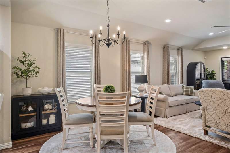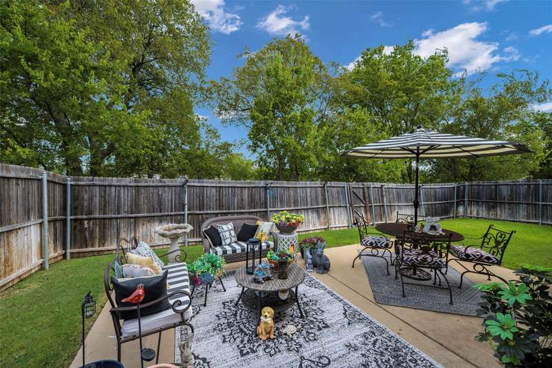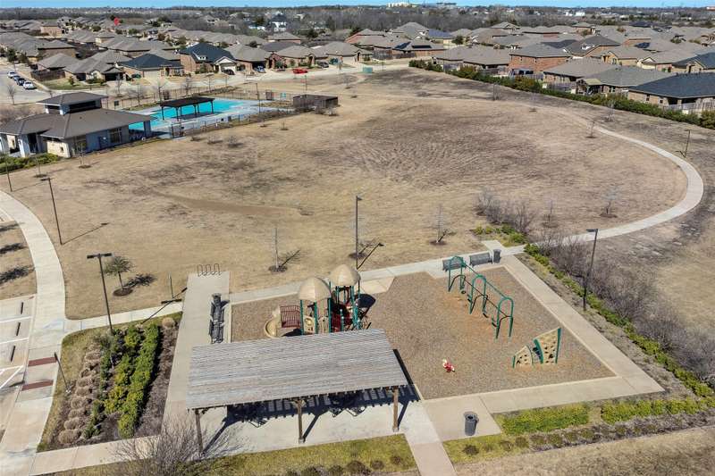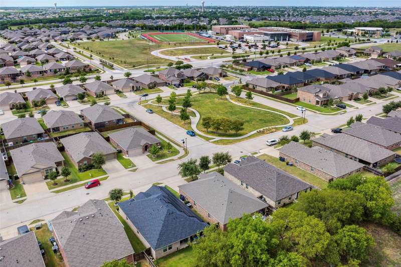 Must See! This home has it all! From the size of the rooms, to the updates to the appliances, right up to the decorative and recessed lighting, this home is move in ready so you will feel right at home. The popular open floor plan features the kitchen to the dining area and has plenty of seating at the granite counter. From there through the spacious family room on to the outside where there is a covered patio as well as large concrete patio area. Enjoy the backyard area with trees and space from other homes. You will enjoy the community feel with an open park across the street. Walk a couple of minutes to the community pool with clubhouse, playground, and workout room. The elementary and middle schools are within walking distance and the new Fate high school, scheduled to open August 2027 is a couple of minute drive. This home is a jewel nestled in a vibrant and growing community. Welcome Home!