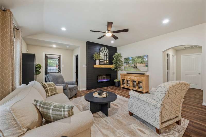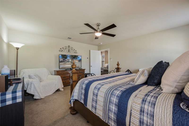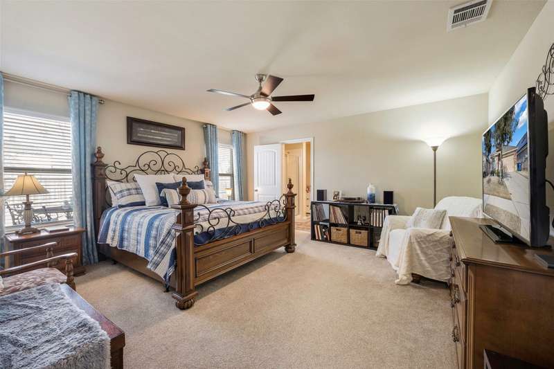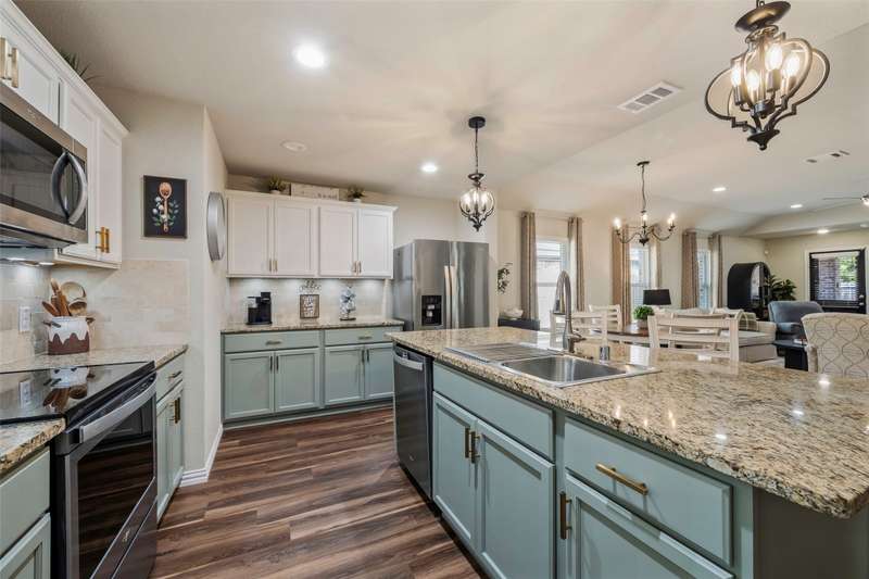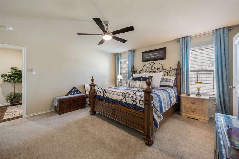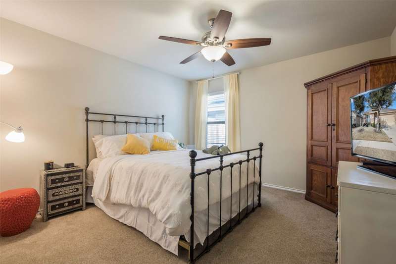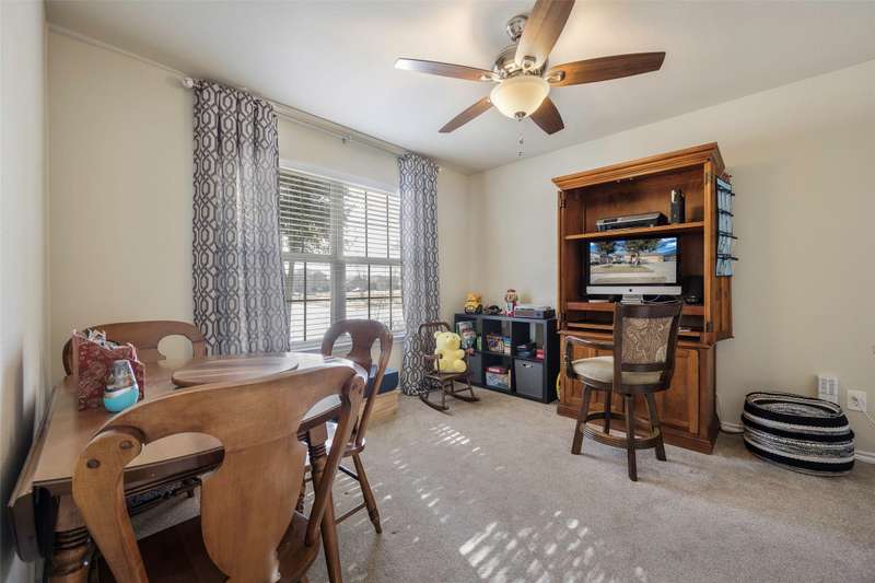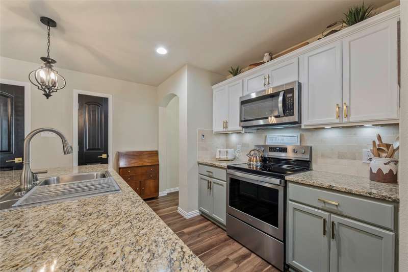 Must See! This home has it all! From the size of the rooms, to the updates to the appliances, right up to the decorative and recessed lighting, this home is move in ready so you will feel right at home. The popular open floor plan features the kitchen to the dining area and has plenty of seating at the granite counter. From there through the spacious family room on to the outside where there is a covered patio as well as large concrete patio area. Enjoy the backyard area with trees and space from other homes. You will enjoy the community feel with an open park across the street. Walk a couple of minutes to the community pool with clubhouse, playground, and workout room. The elementary and middle schools are within walking distance and the new Fate high school, scheduled to open August 2027 is a couple of minute drive. This home is a jewel nestled in a vibrant and growing community. Welcome Home!