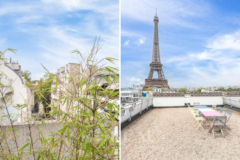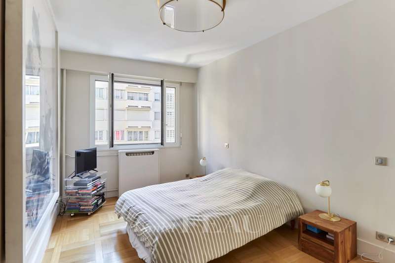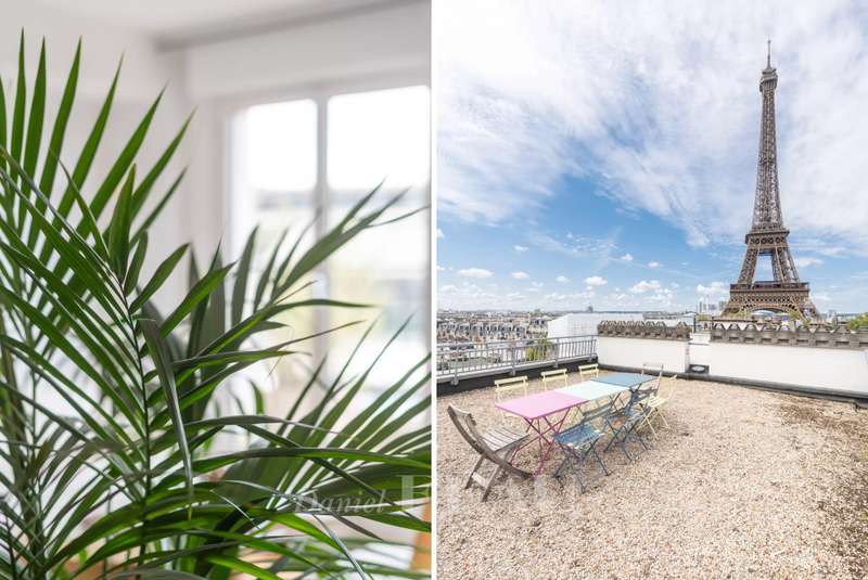 On the 4th floor of an elegant 1950s building with elevator access, this beautifully refurbished 98 m² (Carrez law) apartment offers a perfectly optimized layout and refined finishes throughout. An inviting entrance hall opens onto a spacious dining area and a bright, sun-filled living room, seamlessly connected to a contemporary, fully equipped kitchen. The night quarters comprise three peaceful courtyard-facing bedrooms, including one with a balcony, a large bathroom with toilet, and a separate guest lavatory. Residents of the building also enjoy access to a superb communal rooftop terrace on the 9th floor, boasting panoramic views over Paris and its most celebrated monuments.
