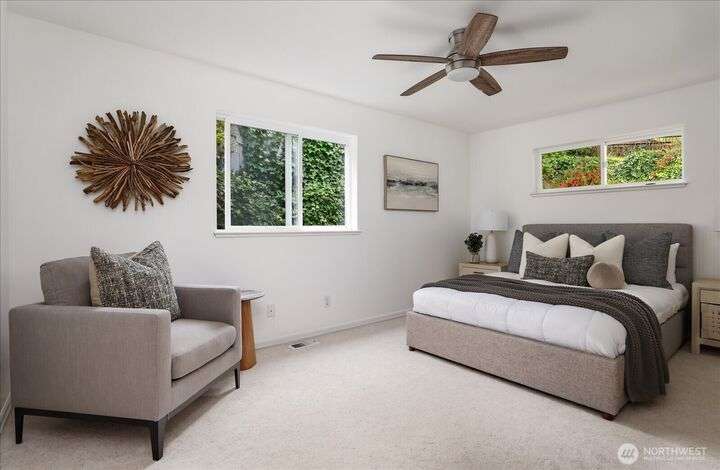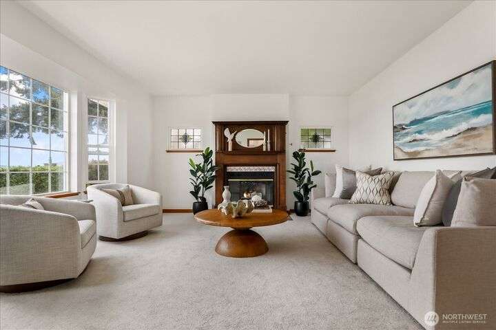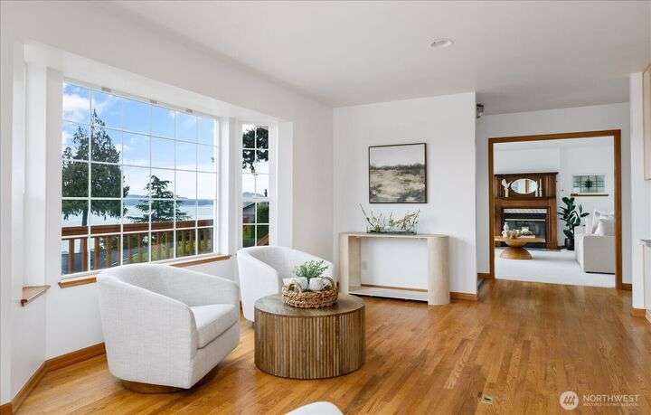 Just staged and huge price drop on this spectacular home with views of Dugualla Bay. Situated on the hillside overlooking the 29 acre Dugualla Hts Conservation Easement protected by the Whidbey Camano Land Trust. Imagine waking up every day with this peaceful setting and views from all your main living spaces. Sunny and bright with loads of windows & 3 skylights. Charming & unique touches- vintage mantel w/ mirror, stained glass windows, leaded glass, hardwood fls, 1 gas and 1 wood burning fireplace, den w/ trundle bed, and much more. Front deck to sit, relax, take in sunsets & sunrise with eagles flying by. Huge upper back yard waiting for creative touches. Minutes to the community beach and clubhouse to drop your kayak or paddle board.