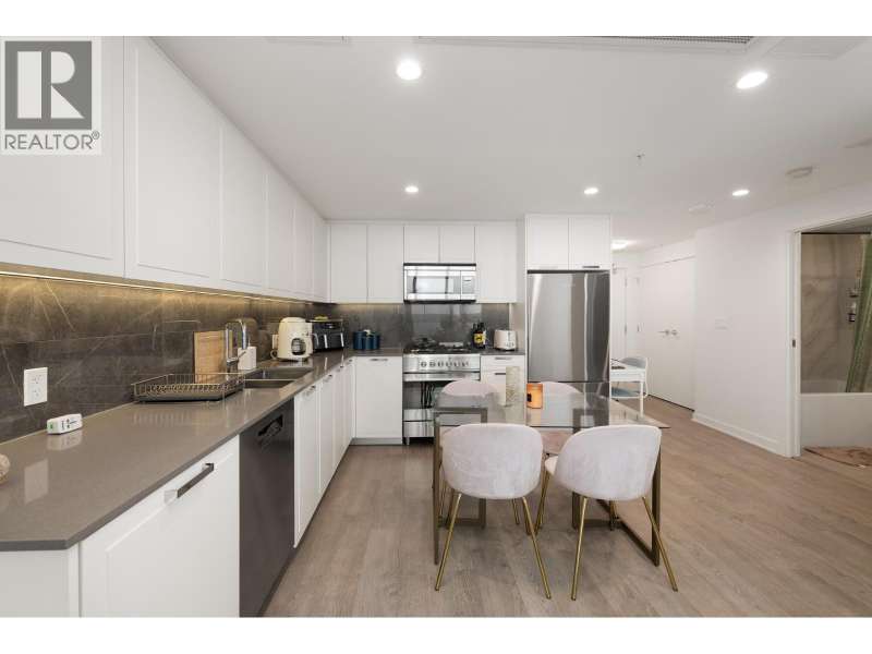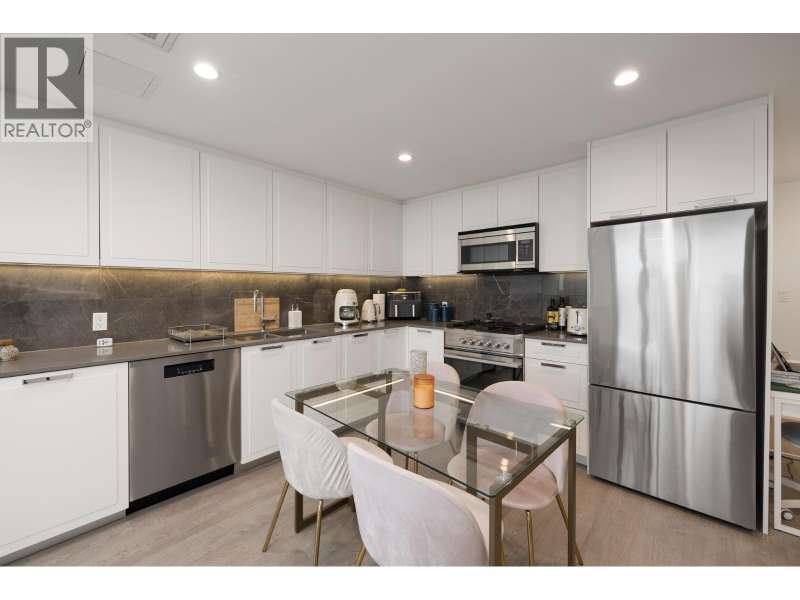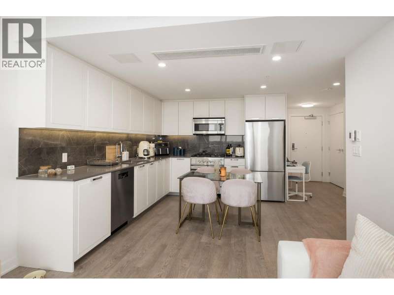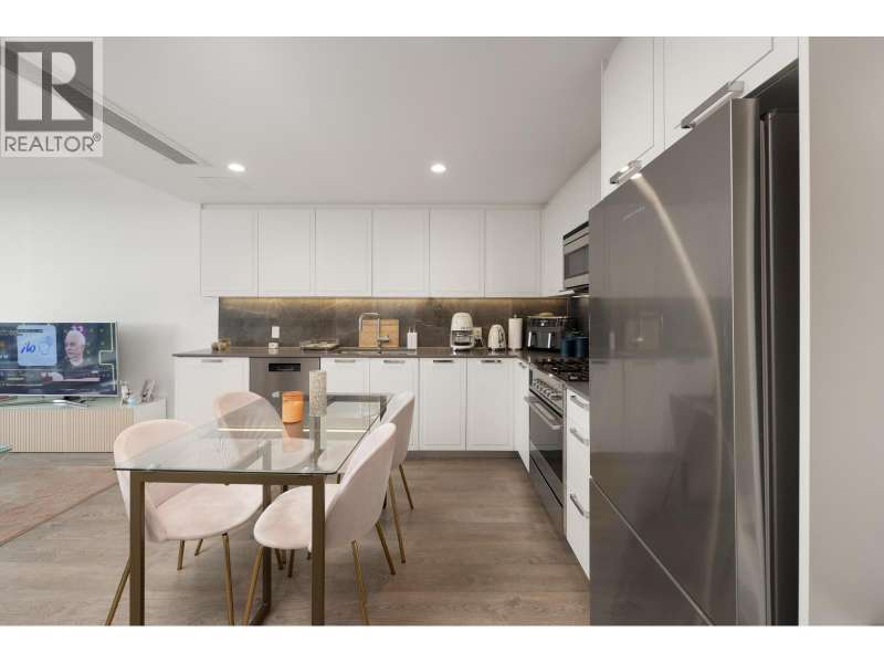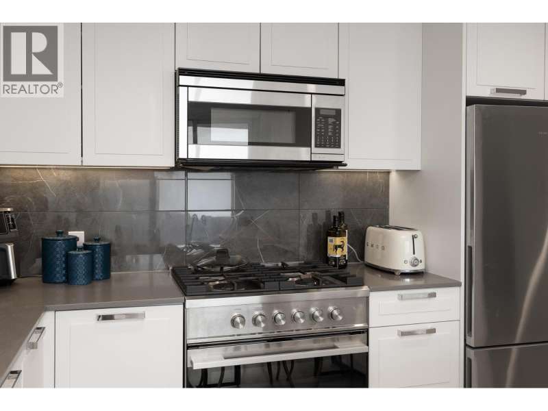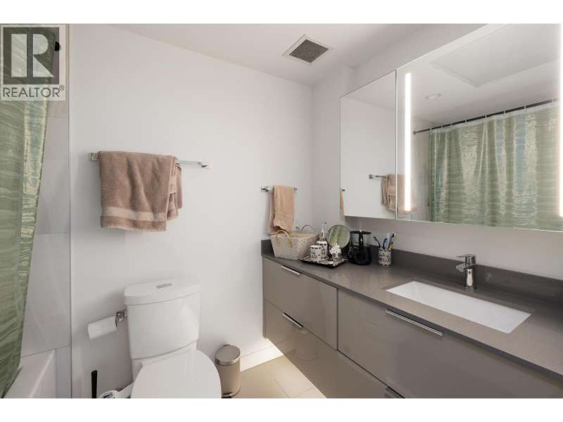 Panoramic Water & City Views at Hunter at Lynn Creek! Experience luxury living in this bright and spacious southwest-facing 1-bed + den (649 sqft) home with air conditioning & EV charger, located in one of the most sought-after North Vancouver communities. The open-concept kitchen features quartz countertops, modern cabinetry, stainless steel appliances, and a gas cooktop, perfect for everyday living and entertaining. Enjoy the generous balcony with unobstructed panoramic views of the water, city, and Second Narrows Bridge. Just minutes from shopping, dining, Deep Cove, and Highway 1, this home offers both convenience and tranquility. Building amenities include a party room, fully equipped gym, outdoor BBQ area, children´s play area, sauna, social lounge, wellness centre, bike repair room. (id:58403)