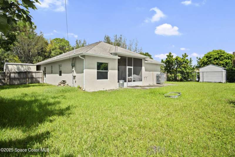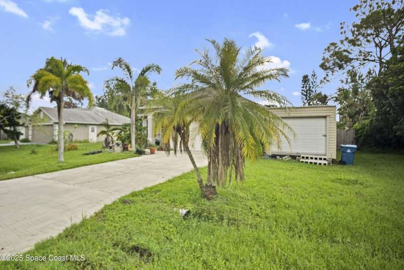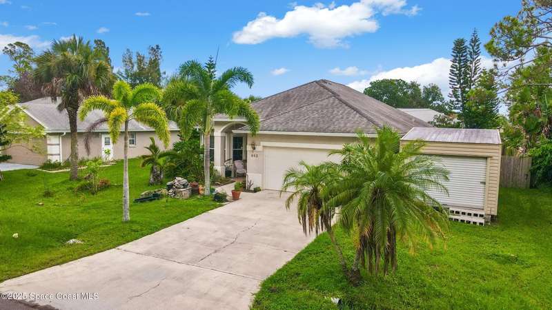 Step inside and be greeted by a bright and welcoming interior. This well-maintained 3bed 2 bath home features a thoughtful split-bedroom floor plan, providing privacy and functionality. Property features a brand new roof, large storage shed with power and tropical backyard. The spacious layout is perfect for family gatherings or simply relaxing after a long day. This home is conveniently located in a quiet, residential neighborhood of Northwest Palm Bay, offering a peaceful escape while still being just minutes away from schools, parks, i95 and shopping centers.