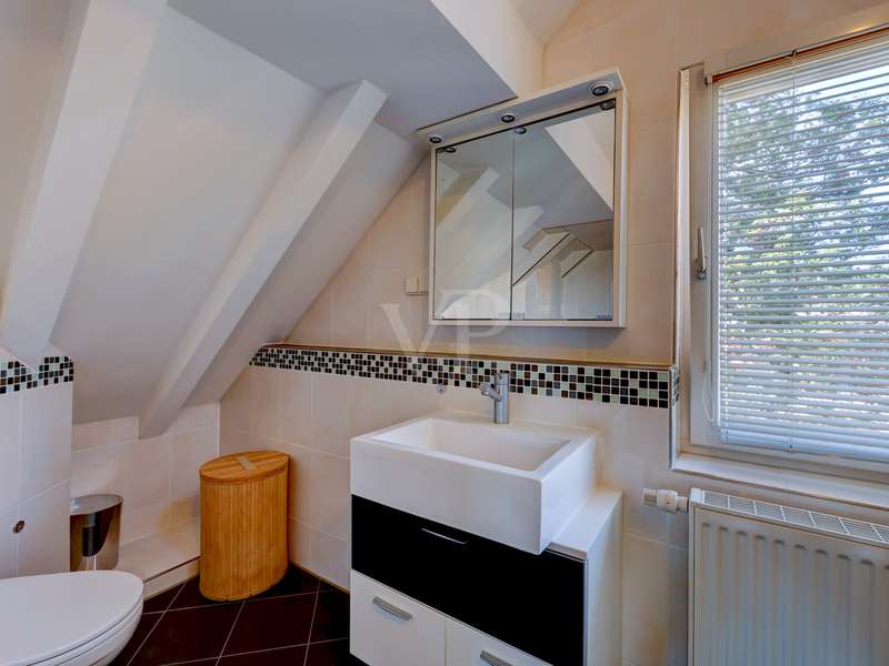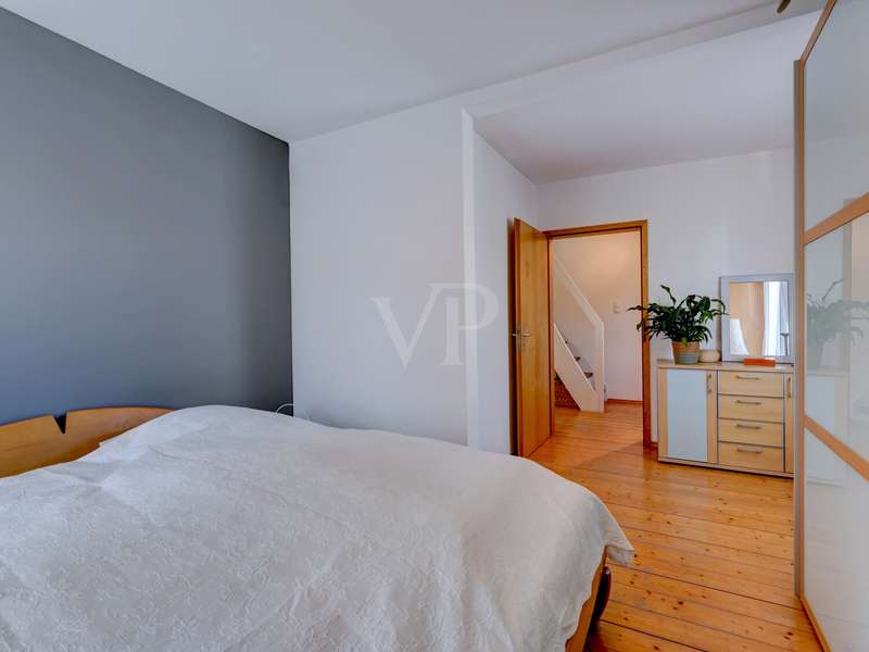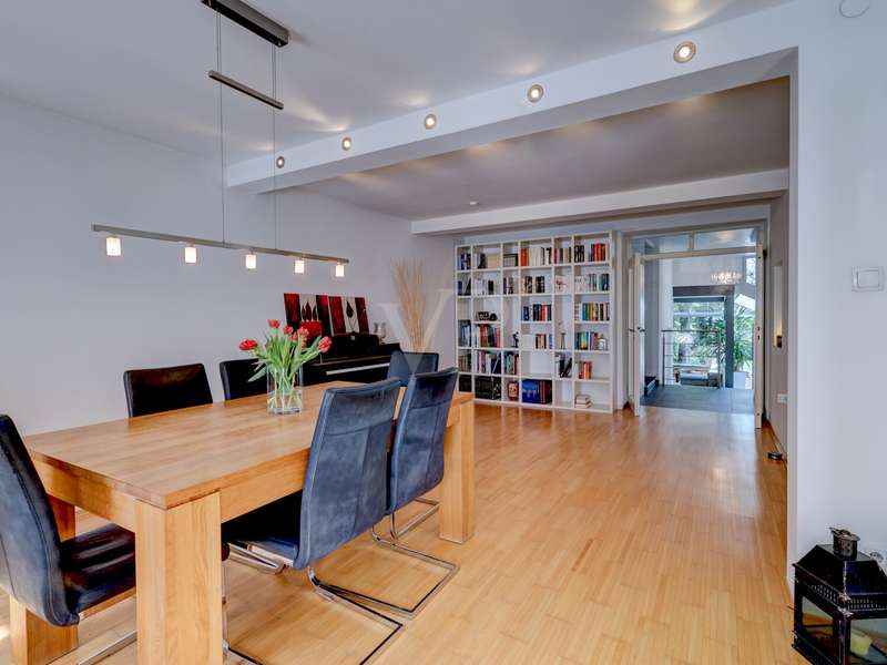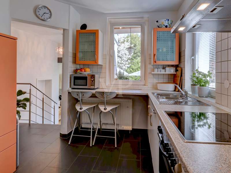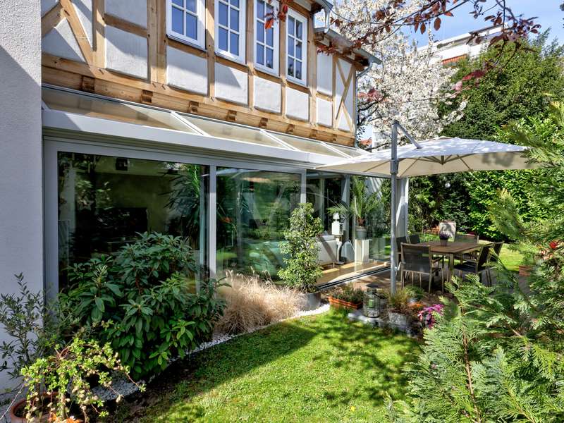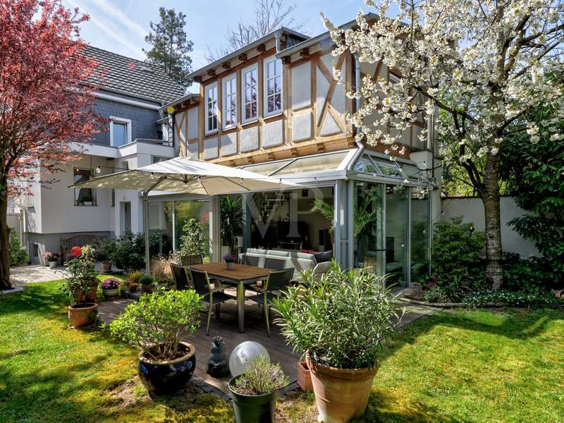 Modernized detached house with fantastic garden in a quiet and central location in Oberursel! Not far from the "Adenauerallee" green area in Oberursel, this unique townhouse from 1880 is a real gem. Modernized with great attention to detail, it combines historical charm with modern living comfort. As soon as you enter, you can feel the special soul of this house. The open-plan rooms, the warm floors, the lovingly preserved details - they tell stories of times gone by. And yet everything is in keeping with the times. Light-flooded rooms, clear lines and stylish design create an atmosphere that is both inviting and incredibly homely. An architectural highlight is the modern extension with generous glazing, which not only brings plenty of daylight into the interior, but also creates a harmonious transition to the garden. A cozy fireplace sets a warm tone here and makes this room an ideal place to relax. The adjoining terrace opens onto the lovingly landscaped garden, which is located in absolute tranquillity. The garden itself is a little paradise - sheltered, green and plenty of space to play, relax or daydream. Children can play freely here, while adults can relax in the shade of old trees. The large terrace invites you to enjoy long breakfasts outdoors or relaxing evenings with a view of the greenery. The space available in the house is ideal for families or couples with generous space requirements. Whether as a family hub or a retreat with a study and guest room - this house adapts to your lifestyle. The modern gas heating ensures cozy warmth and energy-efficient comfort - even in the colder months. A garage and an additional parking space offer practical solutions for your vehicles - a rare commodity in this central location. This townhouse is ideal for anyone looking for something special: atmospheric living in a house with history, combined with modern design, a quiet residential area and excellent infrastructure right on the doorstep.