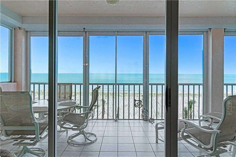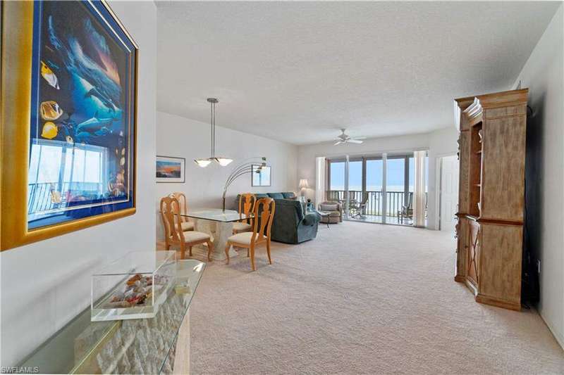 SKIP THE WAITLIST! THE CLUB AT BAREFOOT BEACH MEMBERSHIP AVAILABLE WITH THIS CONDO, SPECIFICALLY! A RARE & UNIQUE OPPORTUNITY! DIRECT BEACHFRONT CONDO with unobstructed Gulf views offered in coveted Barefoot Beach Club! Enjoy panoramic, front-row views of the Gulf from this beautifully maintained residence in North Naples' premier coastal community. This spacious 2-bedroom, 2-bathroom condo offers 1,604 sq ft under air, an open floor plan, and electric hurricane shutters. The light and airy kitchen features light cabinetry, white countertops, a breakfast bar, and an eat-in area. The primary suite offers private lanai access and a spacious en-suite bath with dual vanities, soaking tub, and a walk-in closet. Step onto the expansive screened lanai and take in stunning sunsets, spot dolphins and manatees, and watch boats glide by-right from your private retreat. This unit is perfectly comfortable as-is OR the ideal canvas to update to your personal taste. Nearby to the BRAND-NEW CLUBHOUSE with state-of-the-art fitness center & resort-style pool. Barefoot Beach residents enjoy 3 miles of beach, 2 pools/spas, manned/gated entry & on-site mgmt. OPTIONAL "Club at Barefoot" offers tennis, 2 restaurants & beachside food/bev/chair service. Excellent Collier County location minutes to Mercato, Waterside & easy access to RSW Airport.