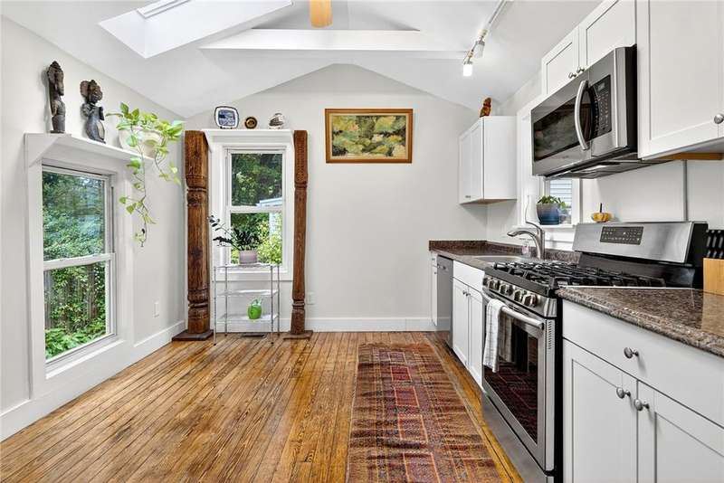 Charming 4 bedroom, 2.5 bath home on the north side of Ithaca with a great deal of natural light. Convenient location less than a mile to the Farmers Market, Ithaca Commons, Cornell campus and multiple coffee shops. Extensive list of upgrades since owner purchased includes new furnace, hot water heater, kitchen and bathroom remodels, back deck and much more (full list available). On the main floor is a bedroom with a private bathroom (great for a roommate) as well as a half bath next to the office. Also on the main floor are the dining room, large eat-in kitchen, laundry room, and living room. Upstairs is another full bathroom and 3 more bedrooms. A small 1 car garage that would also be great for storage since there is also off-street parking in the driveway. Full basement provides lots more storage. Spacious yard with a fantastic back deck. Open house 11-1pm on Sat 10/4.