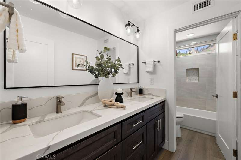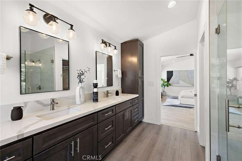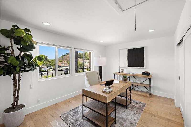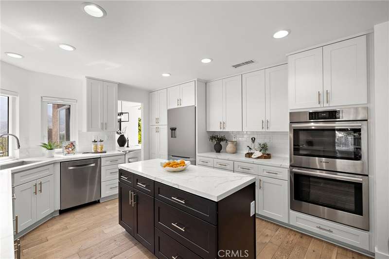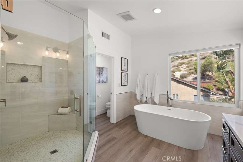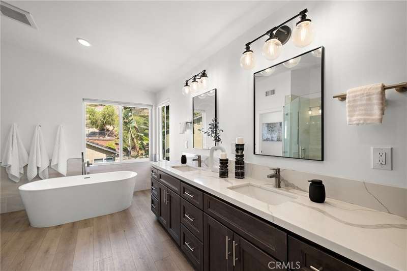Tucked at the end of a quiet cul-de-sac in the hills of Yorba Linda, 28145 Shady Meadow Lane is the kind of home that just feels like home the second you step inside. Thoughtfully redesigned from top to bottom, this 5-bedroom, 3-bathroom home blends modern upgrades with classic comfort. The kitchen is all new and ready for action, with solid wood shaker cabinets, quartz countertops, subway tile backsplash, and quality appliances. Premium white oak hardwood floors, new double-pane windows with premium blinds, smooth coat walls, upgraded lighting, custom built-ins, and solid-core doors throughout give the whole space a polished feel. Upstairs, the primary suite is a total retreat with dual walk-in closets, a spa-style bath, and a private balcony with mountain views.