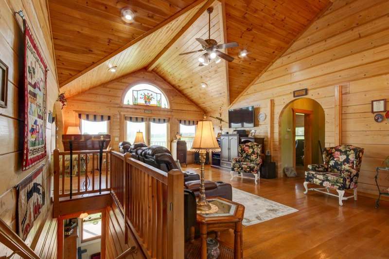 Welcome to Oak Ridge Farm - A Rare 62-Acre Countryside Retreat! Discover the perfect blend of rustic charm & modern comfort at Oak Ridge Farm, a fully operational 62-acre cattle farm nestled in a serene & scenic setting. With rolling pastures, five ponds (one stocked with large mouth bass),perimeter & cross-fencing, this property is ideal for livestock, recreation, or simply enjoying the peace of the countryside. You will love the beautiful Log Home with 2,400+ SF (main residence) with wraparound porch & breathtaking views, Full Walkout Basement that is Framed & ready for your custom expansion.The Primary Suite offers Vaulted ceilings, walk-in closets, tiled shower, & whirlpool tub. The Chef's Kitchen has a spacious eat-in layout, full appliance package,pantry, plus a great view from the bay window. The Large Great Room has vaulted ceilings for an open and airy living space. The main level also offers a Laundry ROOM, 2nd Full Bath, & Office. Large room in basement can be 2nd Bedroom &/or Bonus Room. This home is very Energy-Efficient with Geo-thermal heating & cooling for year-round comfort. This property also offers a Separate guest cabin featuring 2 beds, 2 baths, and living area - great for visitors or potential short-term rental. Additional structures include a 70' x 60' livestock-ready barn with stalls, chutes,& ample storage. A 52' x 32' workshop with 1/2 bath, water, airline hookups, and separate 200-amp service - ideal for woodworking, metalworking, or a home business plus a 14 ft covered equipment storage area. We haven't forgotten your cars-3 car detached log garage! Whether you're looking for a peaceful retreat, a multi-generational living arrangement, or income-producing potential, Oak Ridge Farm offers endless possibilities. With numerous outbuildings, spectacular views, and unmatched privacy, this property is truly one-of-a-kind. Additional features available in the documents section. (Please do not enter property without agent)