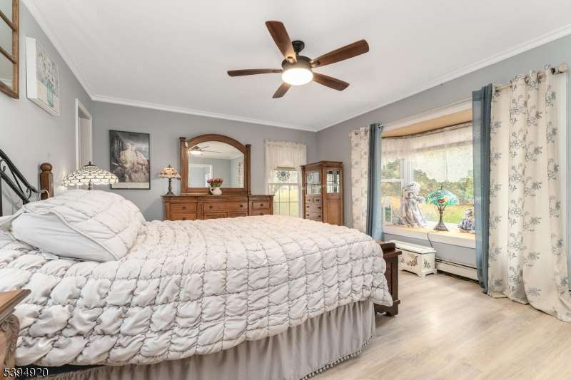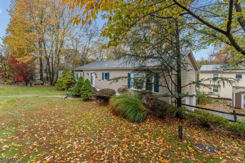 Welcome to this beautifully maintained open-concept ranch home located in a desirable Hopatcong neighborhood. The spacious living room features vaulted ceilings and a stunning stone wood-burning fireplace with heatilators, providing warmth and character throughout the home. The chef's kitchen is a true highlight, offering custom cabinetry, granite countertops, and a large center island/breakfast bar perfect for entertaining or everyday living. The dining room features a door to the outdoor deck, ideal for al fresco dining or relaxing evenings. The primary suite includes a luxurious full bath with a soaking tub, separate shower, and double sinks. Additional features include skylights, newer bay windows, central air conditioning, two car garage, and a portable gas generator with a wall hook-up. Situated on a half-acre flat corner lot, the property offers a spacious backyard patio great for gatherings. Conveniently located close to schools, shops, and major highways, this home offers both comfort and convenience for an easy commute and modern lifestyle.
