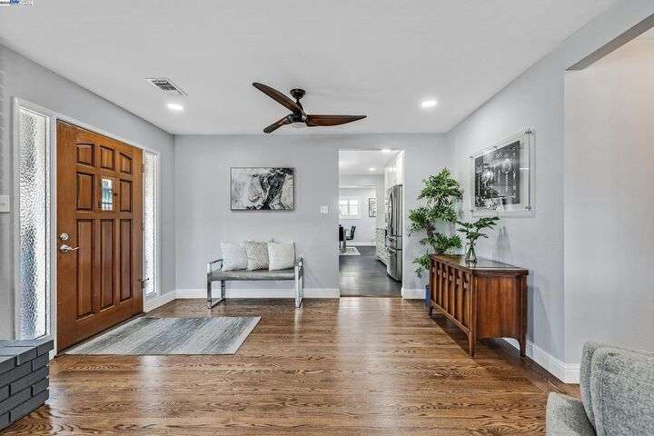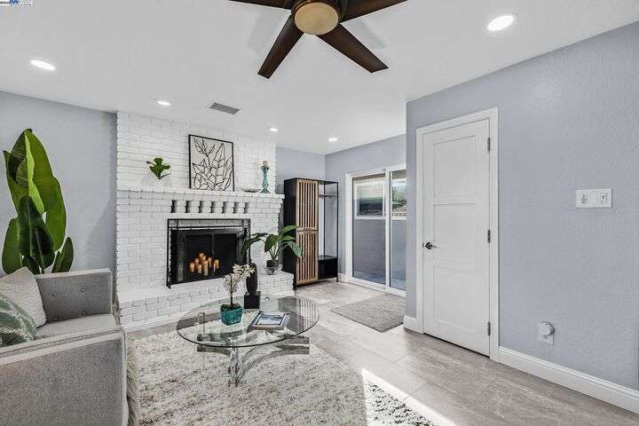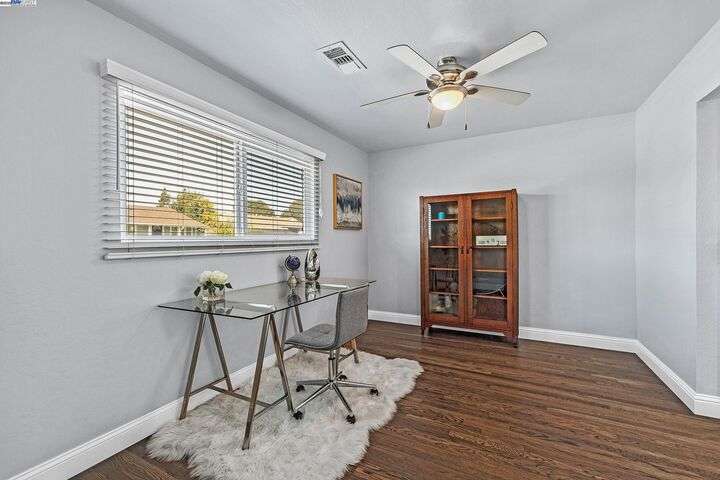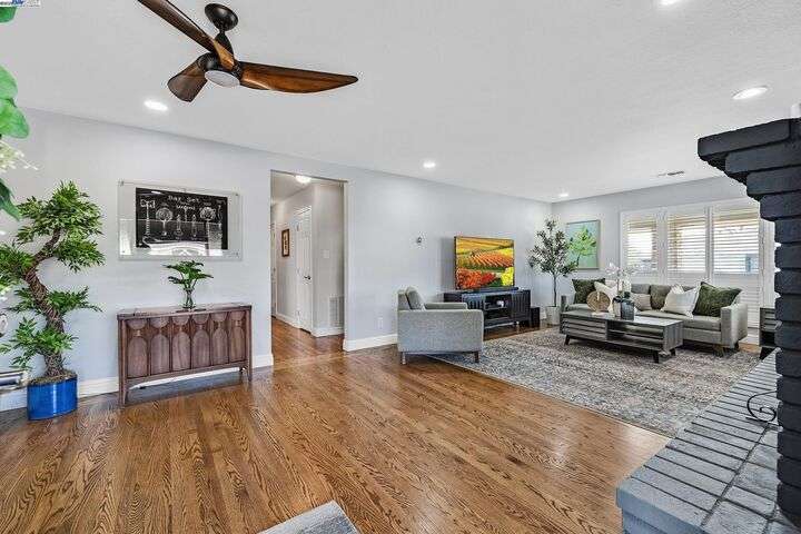 Beautifully updated spacious corner lot home in central Fremont featuring * 3 bedrooms plus an office * 2 remodeled bathrooms * 2,042 sq ft of single-story living * Open-concept layout * Gourmet kitchen with marble countertops * Stainless steel appliances * Double ovens * Gas stove * Pantry * Ample cabinetry * Hardwood flooring throughout * Custom plantation shutters * Dual-pane windows * Recessed lighting * 2 fireplaces * Newer AC * Newer roof * Newer furnace * Newer water heater * Indoor laundry room * 6,625 sq ft lot * Low-maintenance front and backyard * Side yard access with space for additional parking * Close to top-rated schools, restaurants, and major tech employers * This home is a must see!
