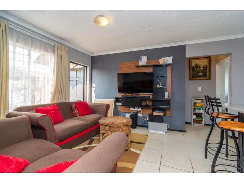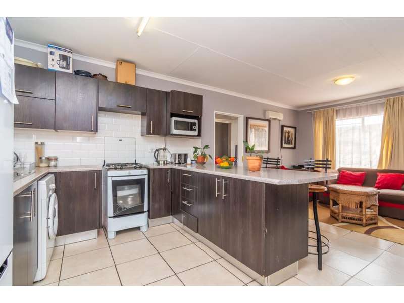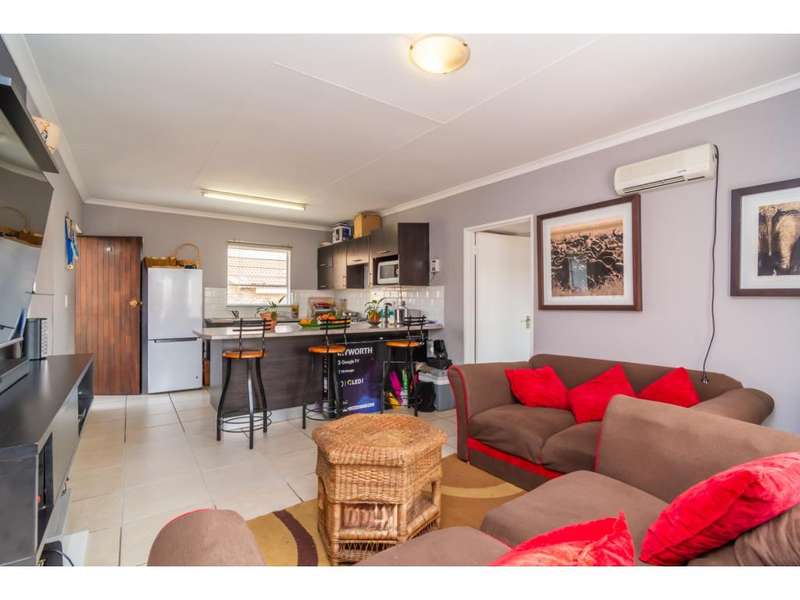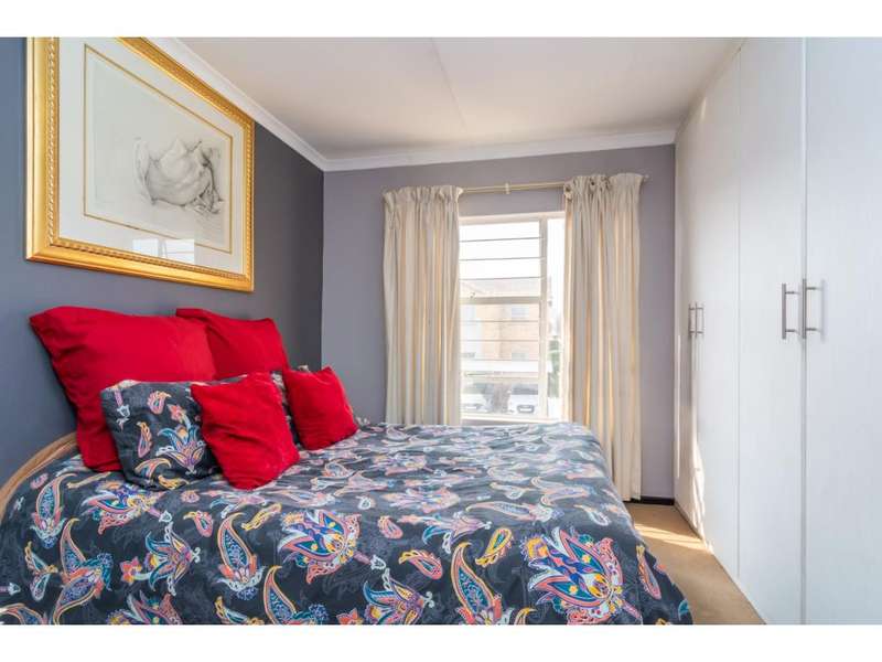Discover this inviting property featuring a spacious master bedroom with a full en-suite bathroom, large windows, and built-in cupboards. The second bedroom also boasts ample natural light from its large windows and includes built-in cupboards for convenient storage. The complex offers a well-designed covered parking spot close to the unit, along with additional visitor parking conveniently located right next to the stairs leading up to the flat. A single flight of stairs brings you to a shared landing between just two flats. Upon entering, you'll be welcomed into an open-plan kitchen and lounge area, with a spacious breakfast nook that separates the two spaces and provides ample storage. The lounge opens onto a charming balcony, that has a direct view of the properties main entrance and your covered parking. The master bedroom features a full bathroom, while the guest bathroom offers a bathtub and toilet for added convenance.
