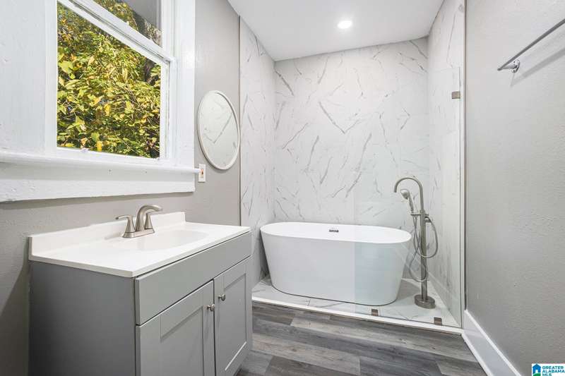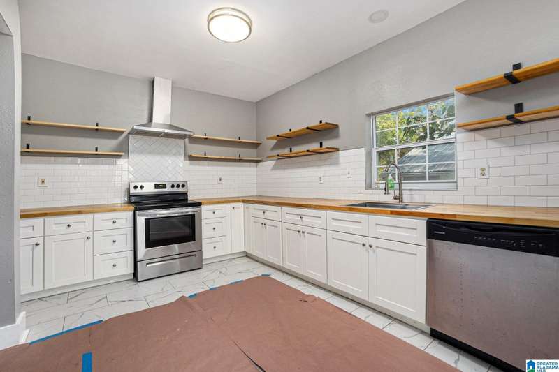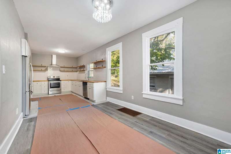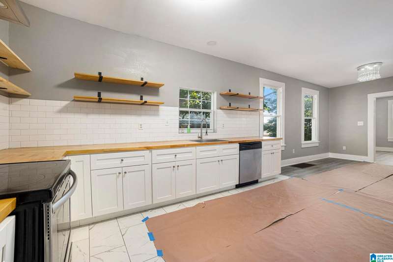 SELLER PAYING $5,000 IN BUYER CLOSING COSTS!! Beautifully renovated & move-in ready, this 3-bedroom, 2-bathroom home blends modern upgrades w/charm & class. Enjoy afternoons on the large front porch, w/new steps & reinforced retaining wall. The spacious living room flows into the dining room all w/new LVP flooring. The brand-new kitchen is complete w/new cabinetry, butcher block countertops, tiled backsplash, open shelving, & stainless steel appliances. Fresh paint & stylish light fixtures throughout. The primary suite offers plush new carpet & en-suite bath w/a tiled shower. The two additional bedrooms share stylish hall bath w/soaking tub w/shower head & new glass. Large laundry closet conveniently provides extra storage & is right off the kitchen. Upgrades include new electrical, plumbing, & painted exterior. Backyard offers a covered patio, fenced area for pets & alley-access driveway parking. Convenient location, less than 5 mins to Birmingham Cross Plex & only 15 mins to UAB!
