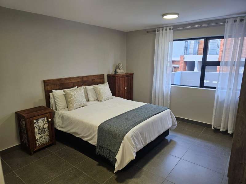 Step into the epitome of modern comfort with our exquisite 2-bedroom, 1.5-bathroom ground floor apartment. Impeccably designed with high-end finishes, this residence promises a lifestyle of sophistication and convenience. Spacious Layout: Enjoy the expansive open-plan lounge and kitchen, adorned with Caesarstone countertops and a sleek under-counter oven. The extra-high ceilings create an atmosphere of grandeur and airiness. Outdoor Bliss: Delight in the private patio featuring a built-in braai, perfect for entertaining friends and family. A small garden complements the outdoor space, providing a tranquil retreat just outside your doorstep. Community Elegance: Revel in the exclusive privileges of a communal pool, play areas, and a clubhouse with additional braai facilities. It is the ideal setting to unwind or socialize with neighbors and friends. Security Beyond Compare: Your peace of mind is our priority. The property is safeguarded by a 2-meter electric perimeter fence, security cameras strategically placed in public areas, and biometric access control for enhanced security. Nestled on the ground floor, this unit offers not only ease of access but also a sense of security. Enjoy the convenience of modern living while having the peace of mind that comes with top-tier security measures. This brand-new, high-end apartment is a rare gem in the real estate market. Do not miss the opportunity to make it yours! Contact us today to schedule a viewing