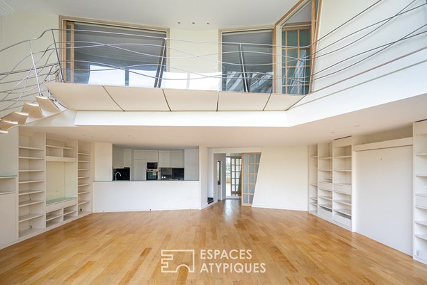 Just steps from the Buttes-Chaumont Park, in the heart of the highly sought-after Plateau area between Jourdain and Les Buttes, this superb 147 m2 (Carrez Law) duplex, extended by a 37 m2 terrace, boasts spectacular volumes and a unique atmosphere.