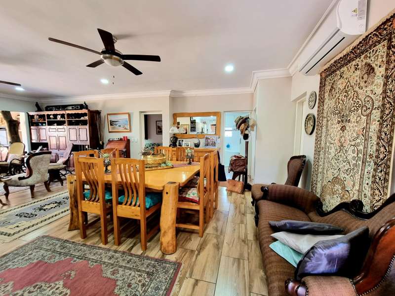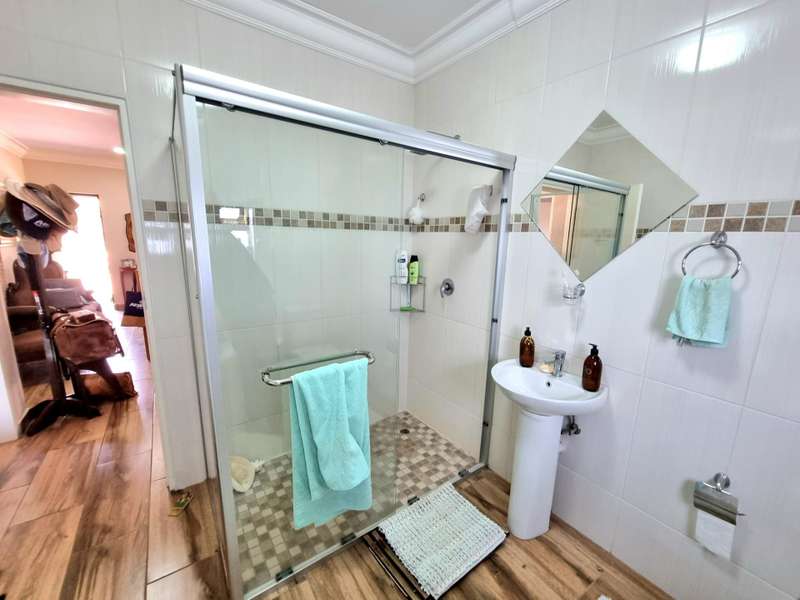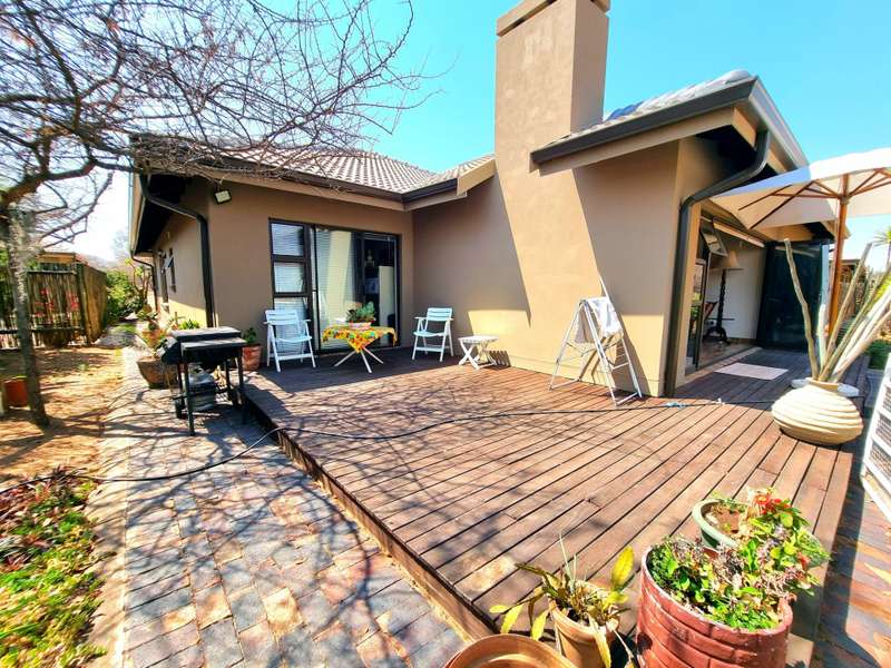 Charming 3-bedroom retirement home located in Koro Ridge, an exclusive sectional title within the prestigious Koro Creek Golf Estate. This home features a spacious open-plan design, with a dining room, living room, and an entertainment area complete with a built-in braai. The scatter doors lead out to a deck that overlooks a peaceful green belt, offering a serene setting for relaxation. The open-plan living area is air-conditioned, ensuring comfort throughout the year. The kitchen is well-equipped with plenty of cupboard space, a gas hob, and an electric oven. A separate scullery and laundry area opens up to a private courtyard. All three bedrooms are generously sized, with ceiling fans and ample built-in cupboards. One of the guest bedrooms also opens out to the deck. The main bedroom features an en-suite bathroom, adding a touch of privacy and convenience. This property also includes a spacious double garage with an automatic roll-up door and extended space for storage or a workshop. Ideal for those looking to retire in style within a secure and tranquil golf estate. For more information give me a call.