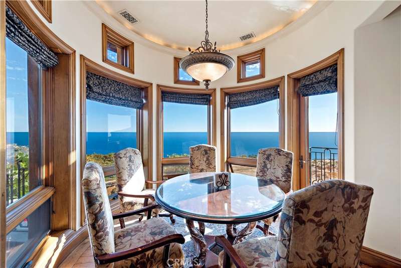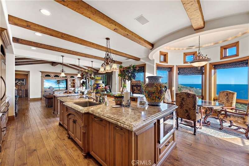Step into coastal luxury at 20 Le Conte, a stunning Mediterranean-style masterpiece that welcomes you with panoramic ocean views from the moment you enter. Located in the gated community of Laguna Sur, this 5,062 sqft. home is a harmonious blend of exquisite architecture, open-concept design, and meticulous attention to detail, offering an unparalleled living experience.The main floor boasts an expansive layout where breathtaking ocean vistas flow seamlessly through the living room, and kitchen. The kitchen features a grand island, custom cabinetry, a massive walk-in pantry, and high ceilings adorned with striking exposed beams. Whether cooking, dining, or simply enjoying the view, this space is designed to impress. Step out onto the spacious balcony from the living room, where you can relax with the soothing ocean breeze, or sip your morning coffee while watching the waves. For the ultimate outdoor entertaining, the lower level features a fully equipped kitchen and dining area, perfect for hosting friends and family in style.This home's interior delights continue with a state-of-the-art home theater, ensuring memorable movie nights and unparalleled indoor entertainment. With four luxurious bedrooms, four full bathrooms, and two half baths, everyone has their private retreat. The elevator adds convenience, seamlessly connecting all levels of the home, while the three-car garage and ample driveway parking ensure space for every guest. Every detail of this home is designed with comfort and elegance in mind, offering the perfect balance of upscale living and coastal relaxation. From its commanding ocean views to its impeccable finishes, 20 Le Conte is a dream come true. Don't miss your opportunity to experience this extraordinary home.
