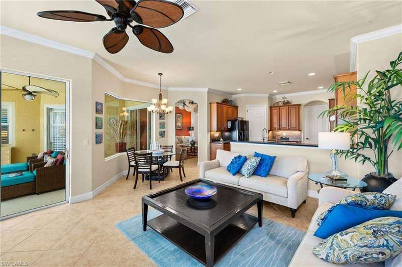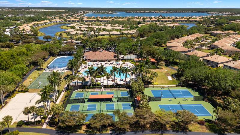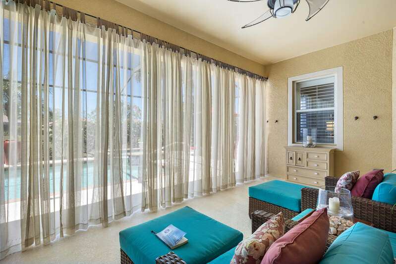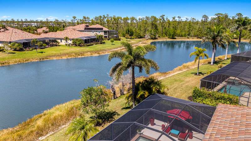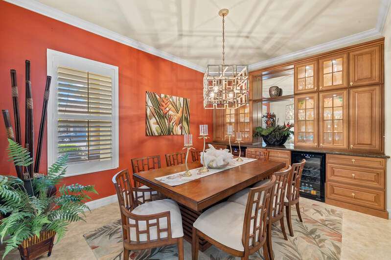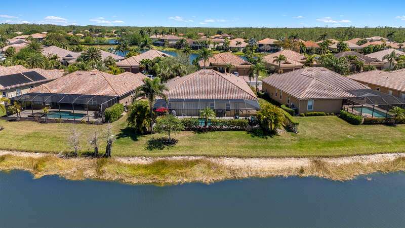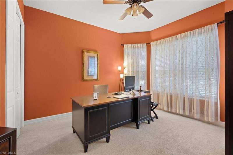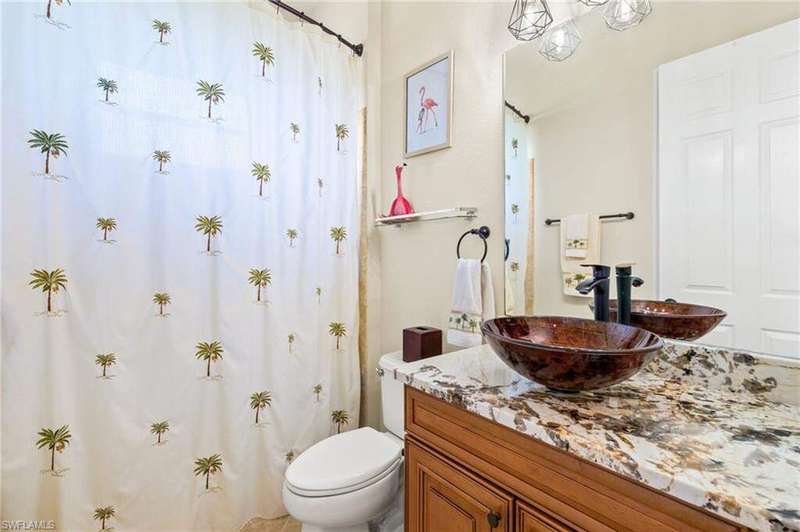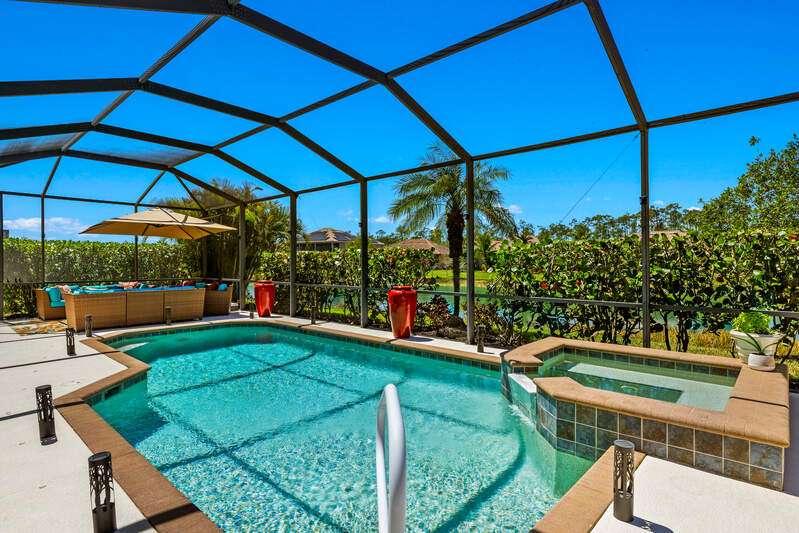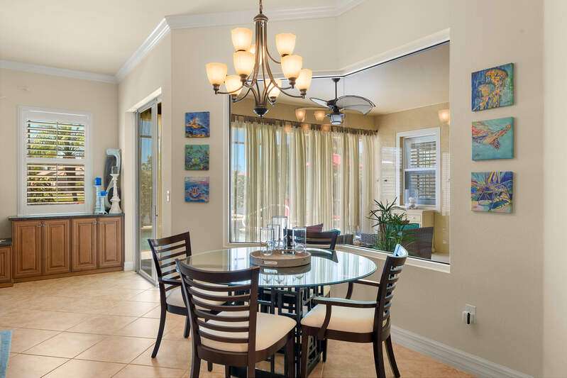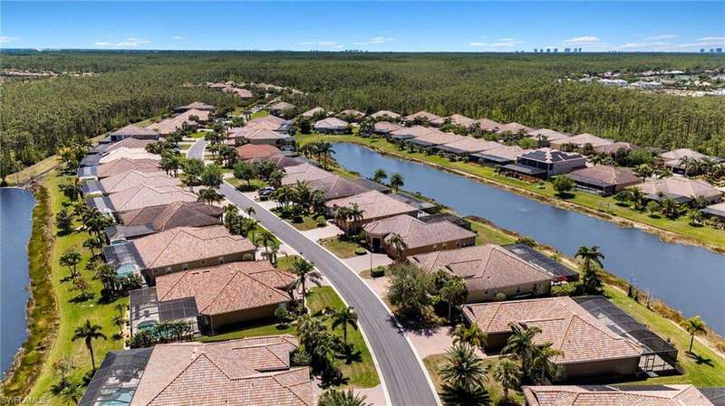 Welcome to your dream home in beautiful Estero, Florida! This stunning Sawgrass model offers 2,932 square feet of thoughtfully designed living space with 5 bedrooms and 3 bathrooms-perfect for families and entertainers alike. Step inside to discover a home that balances elegance with comfort. Upgraded light fixtures illuminate the sophisticated interior, while plantation shutters and Hunter Douglas blinds provide both style and function. The Master bedroom and two additional bedrooms boast luxury vinyl plank flooring that combines durability with aesthetic appeal. The kitchen shines with beautiful granite countertops, premium sink, and fixtures-complemented by modern appliances including a newer dishwasher and refrigerator. You will appreciate the built-in cabinetry featuring two wine refrigerators-because one is never enough for true entertaining! Outside, the large lanai with roll-down hurricane shutters creates a perfect indoor-outdoor living experience. The pool area, recently updated with a new pump (2022), filter (2020), and heater sensor (2023), includes convenient features like autofill and an i-Aqua web-based system. This home's practical touches include 3M sun protection film reducing heat and sun damage, and a freshly painted exterior (2021). The community amenities rival resort living with a clubhouse, 24-hour fitness center, pickleball and tennis courts, children's play area, sports field, butterfly garden, and walking paths. Conveniently located near restaurants, shopping, and Southwest Florida International Airport. Your beautiful Florida sanctuary awaits!
