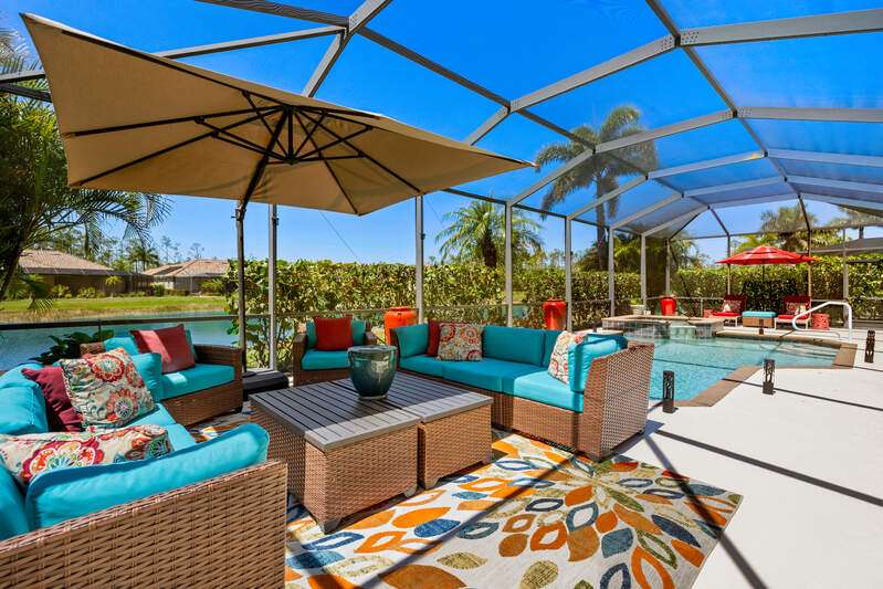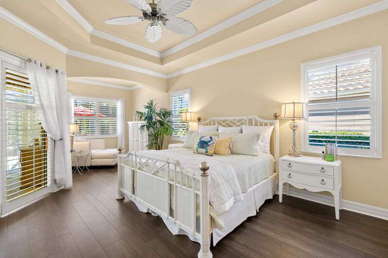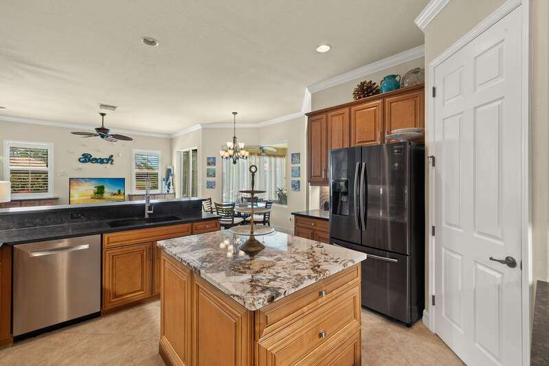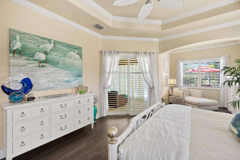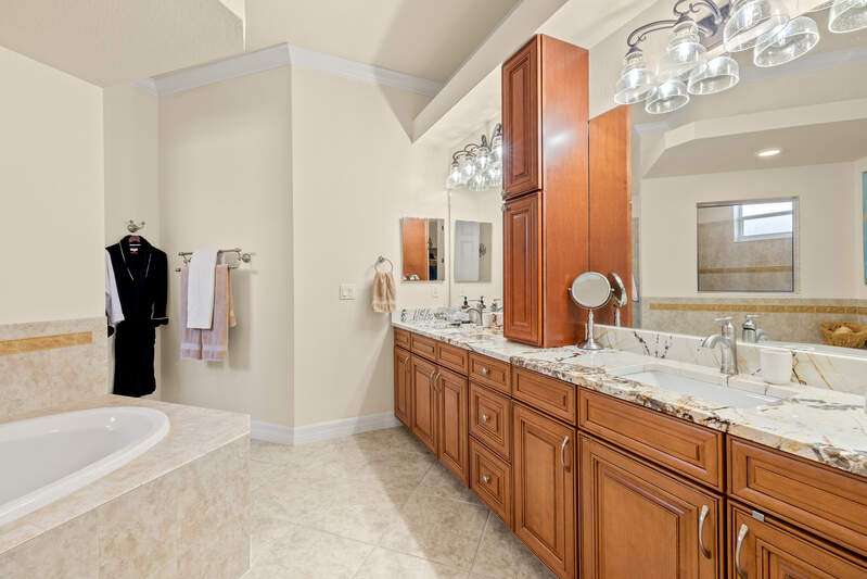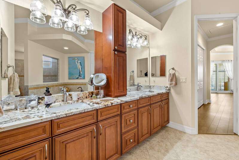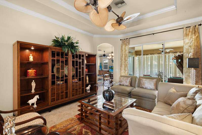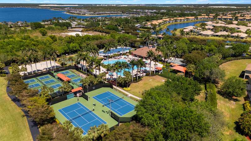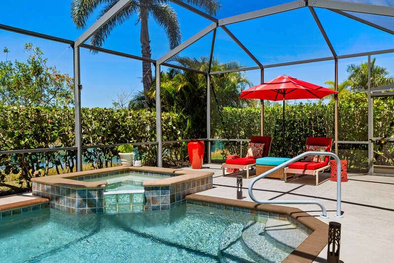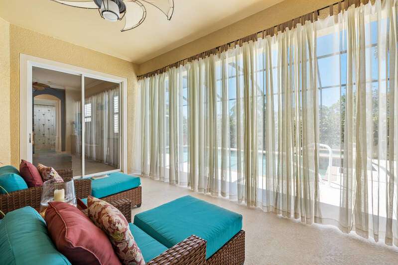 Welcome to your dream home in beautiful Estero, Florida! This stunning Sawgrass model offers 2,932 square feet of thoughtfully designed living space with 5 bedrooms and 3 bathrooms-perfect for families and entertainers alike. Step inside to discover a home that balances elegance with comfort. Upgraded light fixtures illuminate the sophisticated interior, while plantation shutters and Hunter Douglas blinds provide both style and function. The Master bedroom and two additional bedrooms boast luxury vinyl plank flooring that combines durability with aesthetic appeal. The kitchen shines with beautiful granite countertops, premium sink, and fixtures-complemented by modern appliances including a newer dishwasher and refrigerator. You will appreciate the built-in cabinetry featuring two wine refrigerators-because one is never enough for true entertaining! Outside, the large lanai with roll-down hurricane shutters creates a perfect indoor-outdoor living experience. The pool area, recently updated with a new pump (2022), filter (2020), and heater sensor (2023), includes convenient features like autofill and an i-Aqua web-based system. This home's practical touches include 3M sun protection film reducing heat and sun damage, and a freshly painted exterior (2021). The community amenities rival resort living with a clubhouse, 24-hour fitness center, pickleball and tennis courts, children's play area, sports field, butterfly garden, and walking paths. Conveniently located near restaurants, shopping, and Southwest Florida International Airport. Your beautiful Florida sanctuary awaits!