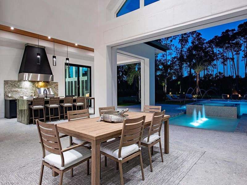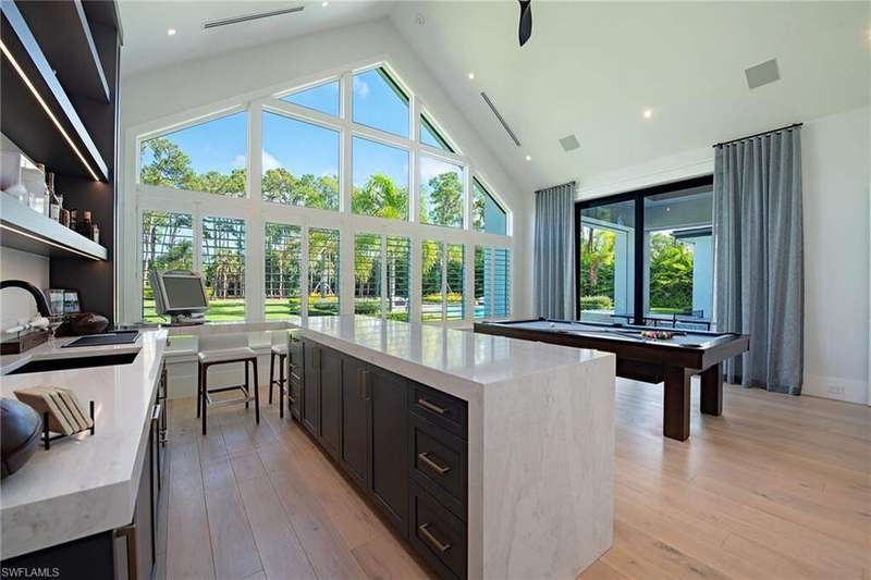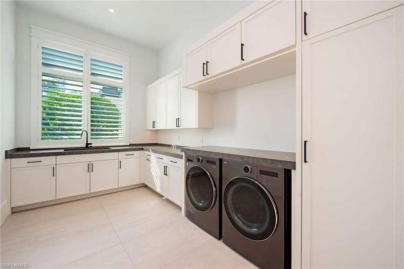Welcome to Coach House Lane, a Gated residence celebrated for its luxury and privacy. This fully furnished 2023 estate sits on 2.58 acres of meticulously landscaped grounds with no HOA restrictions and offers over 7,200 sq. ft. of expansive single-level living. Designed for those who appreciate both comfort and sophistication, the home features a chef's kitchen with Wolf, Sub-Zero, and Miele appliances, a fully equipped prep kitchen/butler's pantry, bar and game room, dedicated media/entertainment room, private study, and a custom temperature-controlled walk-in wine room. The residence is enhanced by a Control4 Smart Home Automation system, providing seamless control of lighting, climate, entertainment, and security throughout. The sprawling backyard offers the ultimate retreat with a resort-style pool and spa, firepit, and a spacious lanai with fireplace and bar area-perfect for entertaining and relaxing. A professional lighted putting green with two hitting stations overlooks the pool, and there's ample room to add a tennis/pickleball court or guest house. Car enthusiasts will love the six-car, air-conditioned garage with soaring ceilings that can accommodate up to 12 vehicles, while the whole-house generator ensures uninterrupted comfort and convenience. The primary suite serves as a true sanctuary, offering a sitting area, morning bar, media room, spa-like bath, with a steam shower featuring integrated Bluetooth audio, and dual walk-in closets - including a luxurious dressing room with its own washer/dryer and steamer. Each en-suite guest bedroom provides a private, elegant retreat for family and friends. Surrounded by world-class golf courses including Royal Poinciana and Grey Oaks. Located just minutes from Naples Private Airport, 5th avenue, downtown Naples and World Renowned Beaches . This remarkable property perfectly combines modern technology, refined design, and resort-style living.