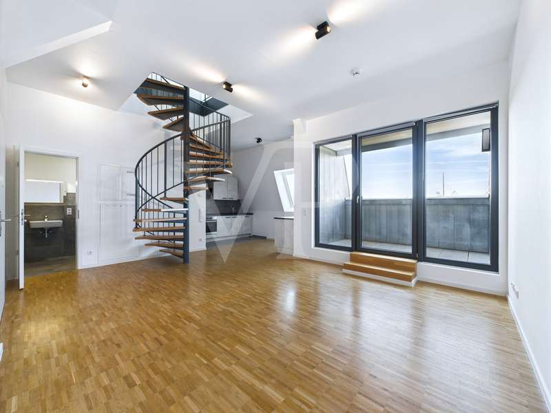 Welcome to your new dream apartment in the popular Jadelofts Wilhelmshaven! This elegant three-room maisonette boasts a modern design, an open-plan concept and a special living atmosphere. With approx. 86.52 m² of living space, it offers plenty of room for those who love something special. The apartment is easily accessible via a passenger elevator and welcomes you with a spacious, open-plan living and dining area with an integrated kitchen - the ideal place to relax, cook and enjoy. Large windows let in plenty of natural light and provide access to the sunny balcony - perfect for a relaxed start to the day or cozy evenings outdoors. There is also a comfortable shower room on this floor. A practical spiral staircase takes you to the top floor. A bright, spacious bedroom and a further, versatile room await you there - ideal as a home office, dressing room or retreat. A modern full bathroom rounds off the space on this level. The most important data at a glance: - Living space: approx. 86.52 m² - 3 rooms with open-plan living and cooking area - Passenger elevator - balcony - Rooms flooded with light - Two modern bathrooms - High-quality furnishings - Quiet, central location - Cellar compartment and parking space The Jadelofts offer urban living in a central location in Wilhelmshaven, with good connections to the city center, harbour and local recreation areas. Shopping facilities, cafés and the city park are within easy walking distance. Be inspired by this special apartment - we look forward to your inquiry!