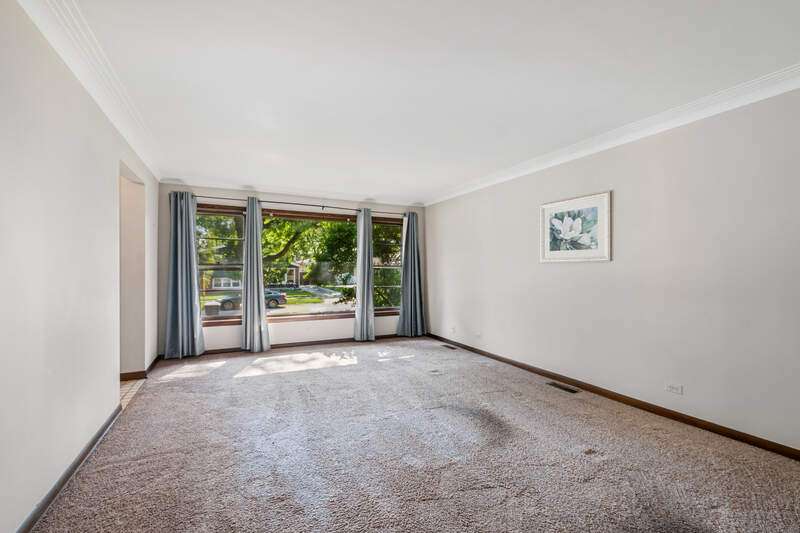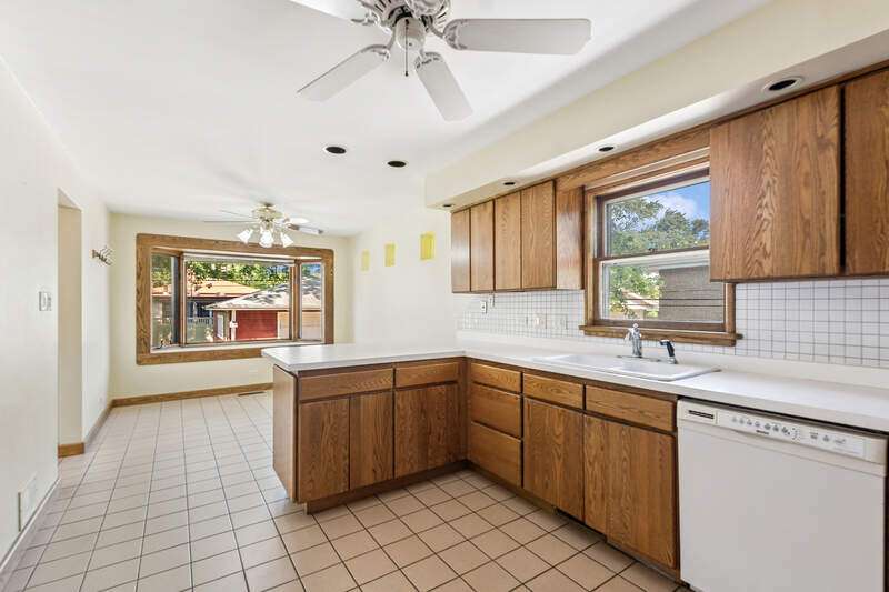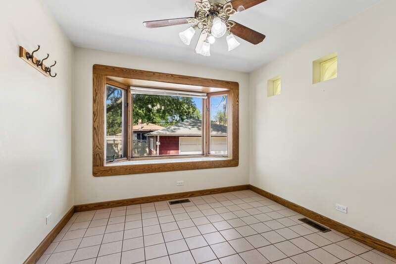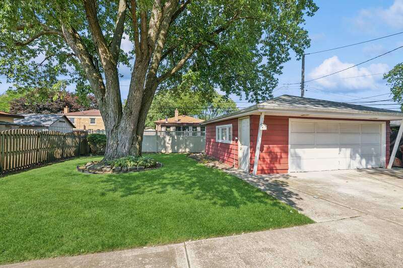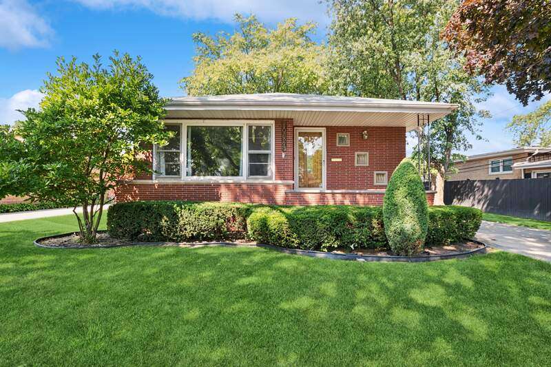 Welcome to this beautiful all brick ranch home located in the heart of Oak Lawn. This home offers fantastic curb appeal with a sprawling driveway leading to a spacious 2.5 car detached garage. Step inside and you will immediately appreciate the warm and inviting atmosphere. Bright and sunny spacious living room has beautiful crown molding and is the perfect spot for relaxing and entertaining. The large eat in kitchen features many wood cabinets, plenty of counter space, can lighting, newer stove and microwave. You will also find a beautiful bay window in the eat in kitchen. Three nice size bedrooms all featuring gleaming hardwood flooring and ceiling fans. The full hallway bathroom has been beautifully remodeled. The half bathroom is perfect for guests, adding convenience and functionality. The full finished basement expands your living space with an open family room, complete with durable vinyl flooring. Off the family room is a built-in bar, ideal for hosting gatherings. You'll also find an office or workout room in the basement. Large utility room perfect for storage. Outside, enjoy a spacious yard complete with a concrete patio. A detached 2.5 car garage offers additional convenience and storage. This is the perfect opportunity to own a spacious home in a sought after location near shopping, dining, transportation, schools, parks, and more! Schedule your showing today!