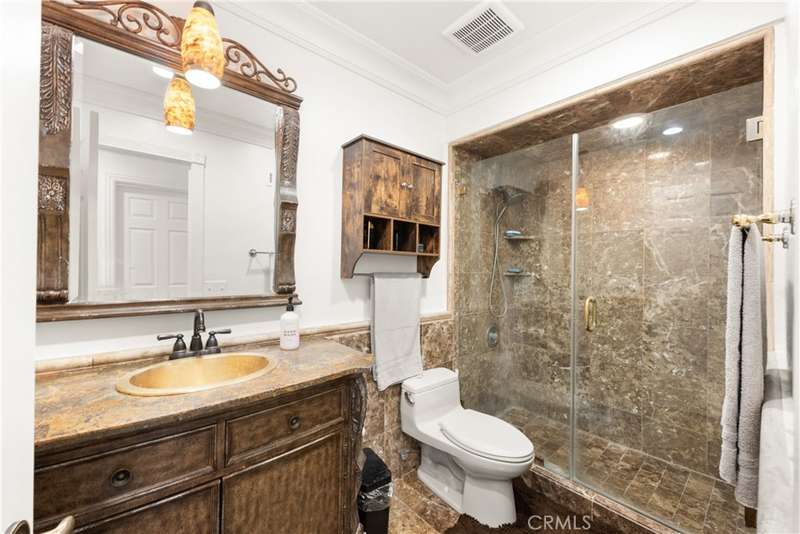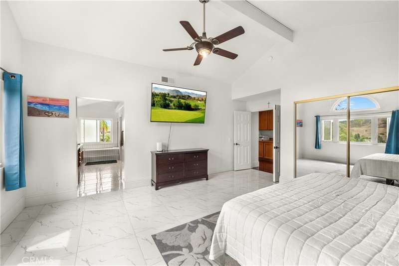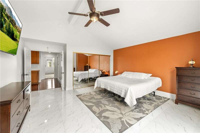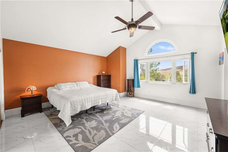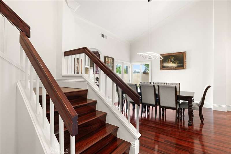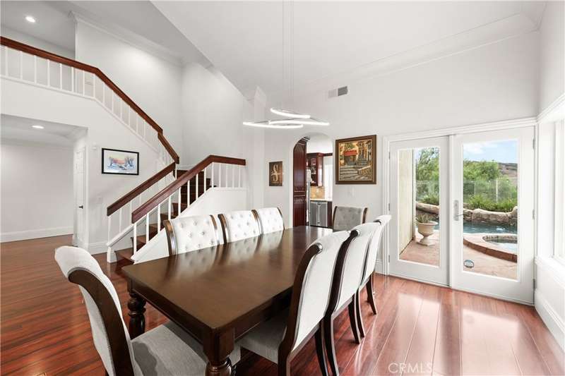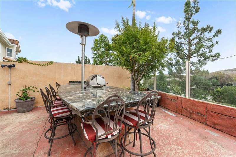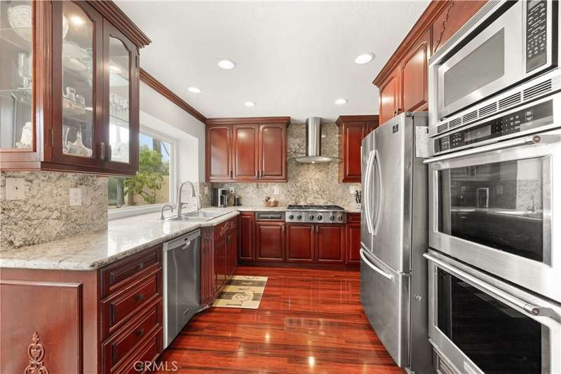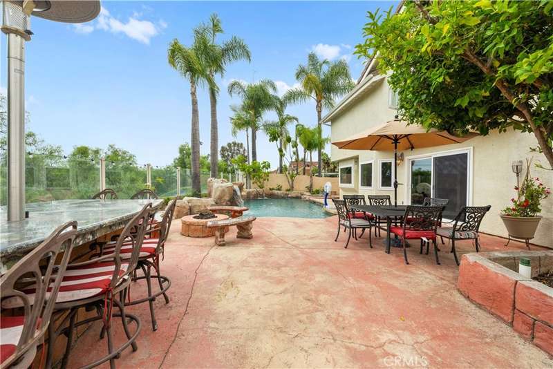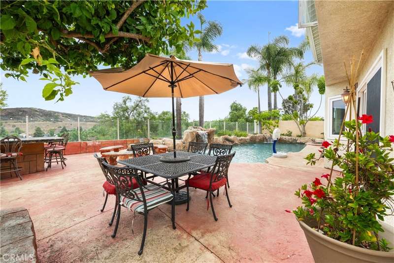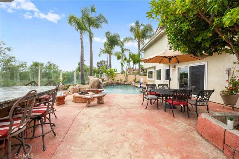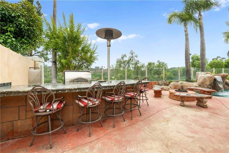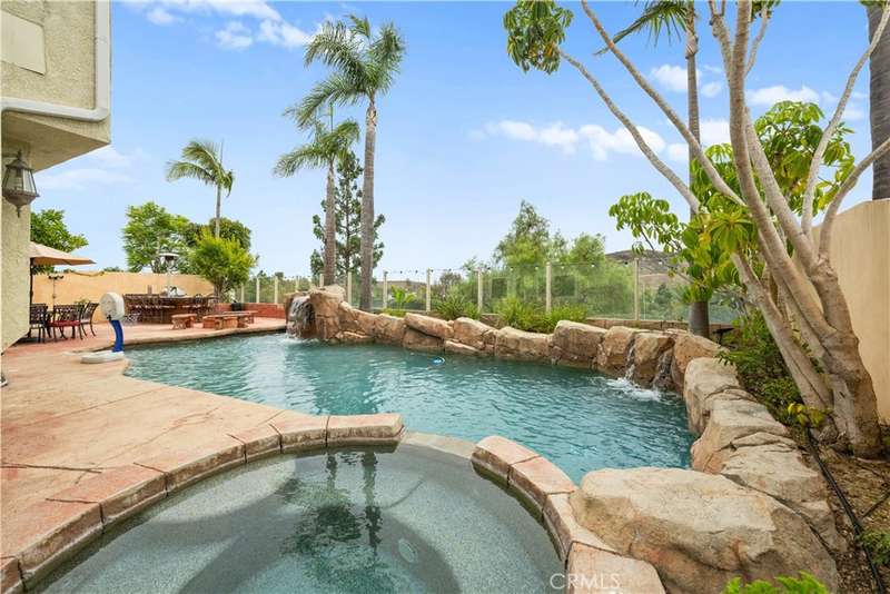 Outdoors, the backyard is nothing short of a resort escape--a custom pool with cascading waterfalls, relaxing spa, built-in BBQ, and tropical landscaping accented by tall palms. Fruit trees flourish throughout the property, including lemon, pomegranate, and persimmon.