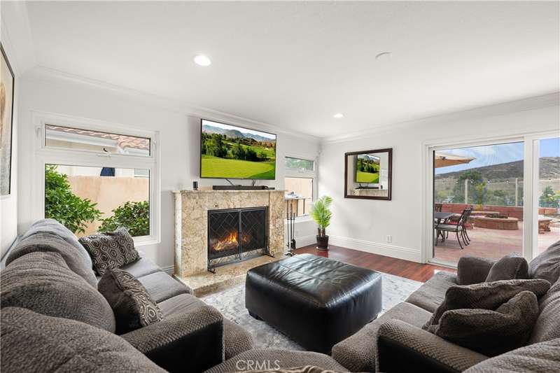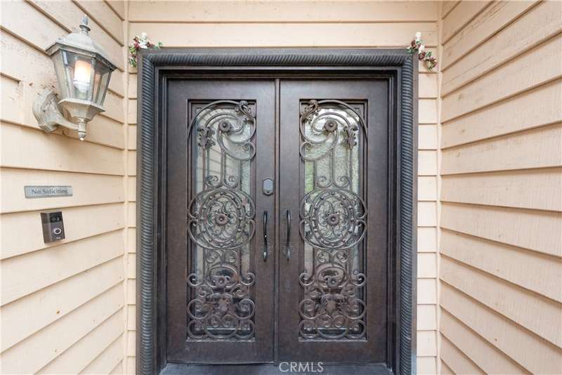 Step through the ornate iron double doors into a dramatic entry with soaring ceilings that immediately set the tone. To one side, the formal living and dining rooms welcome elegant entertaining. To the other, a warm and inviting family room with a fireplace creates the ideal spot to unwind while soaking views of the backyard and hills beyond.