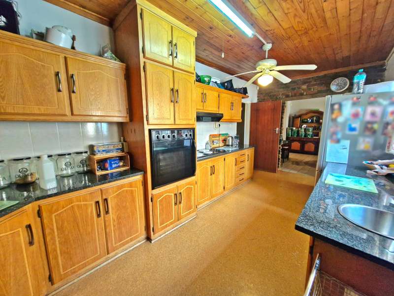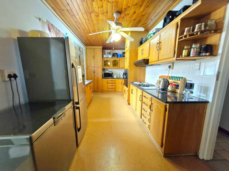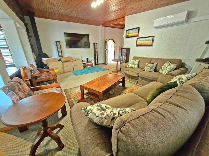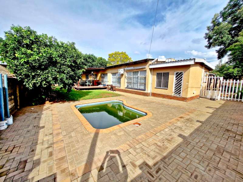 This stunning 4-bedroom, 3-bathroom home offers the perfect blend of comfort and style. The expansive open-plan living and TV room is a welcoming space with air conditioning and a cozy fireplace, ideal for family gatherings. Flowing seamlessly into the dining area, the open-plan kitchen boasts ample cupboard space, beautifully maintained granite countertops, and a separate scullery and laundry room for added convenience. All four north-facing bedrooms are bathed in natural light, creating a warm and inviting atmosphere. The luxurious main bedroom features an air conditioner, a walk-in closet, and a private en-suite bathroom. The additional two bathrooms each include a shower, bathtub, basin, and toilet, ensuring convenience for the whole family. Designed for those who appreciate space, this impressive home is perfect for a large family. As a bonus, a one-bedroom flatlet—comparable in size to a small home—currently generates a rental income of R5,000 per month. Outdoor entertainment is a delight with a swimming pool, a built-in braai area, and three Wendy houses for extra storage or creative use. This exceptional property is a must-see for those seeking comfort, functionality, and investment potential!